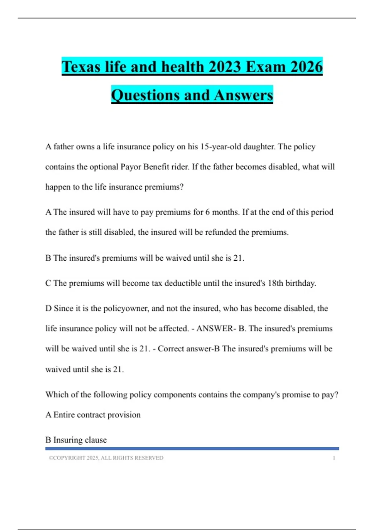 Texas life and health 2023 Exam 2026 Questions and Answers