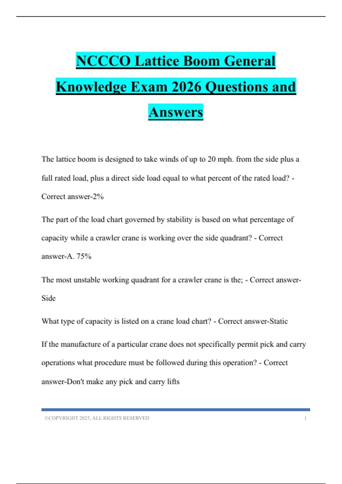 NCCCO Lattice Boom General Knowledge Exam 2026 Questions and Answers