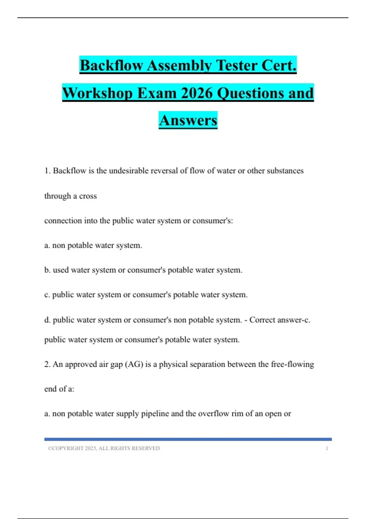 d. public water system or consumer's non potable system. - Correct answer-c.