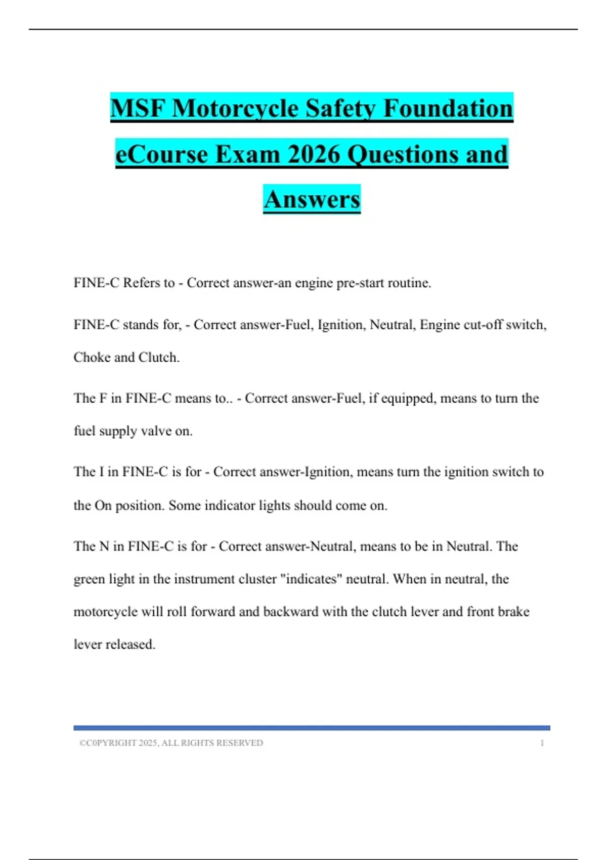 MSF Motorcycle Safety Foundation eCourse Exam 2026 Questions and Answers