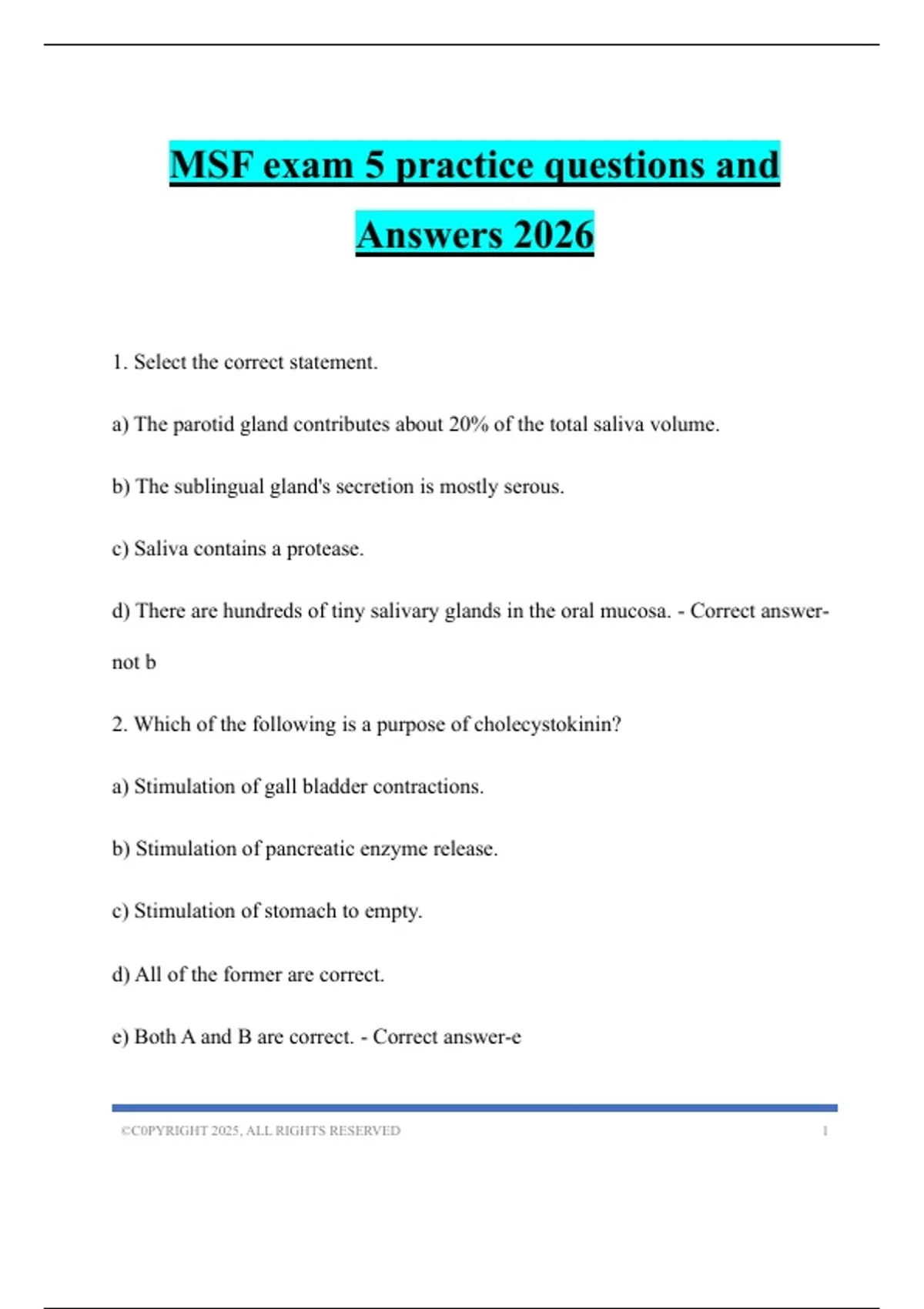 MSF exam 5 practice questions and