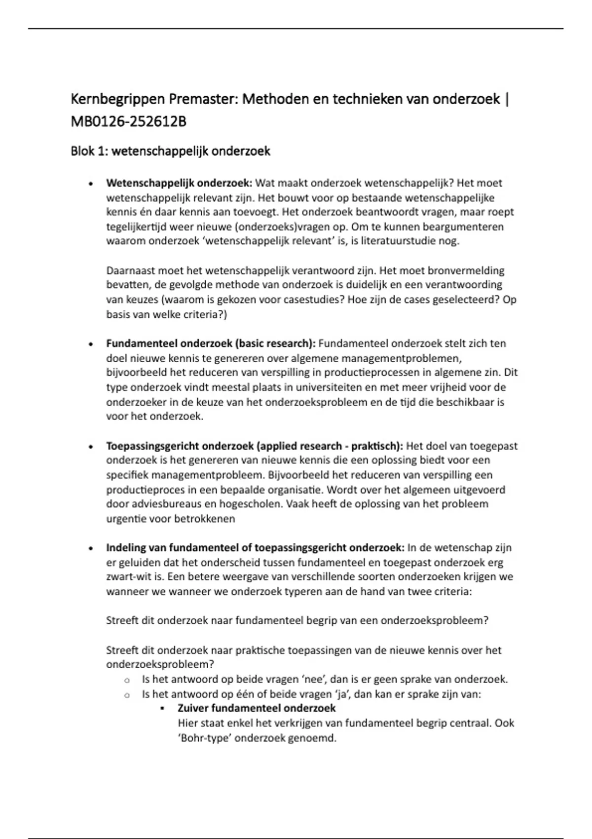 Kernbegrippen Premaster: Methoden en technieken van onderzoek |