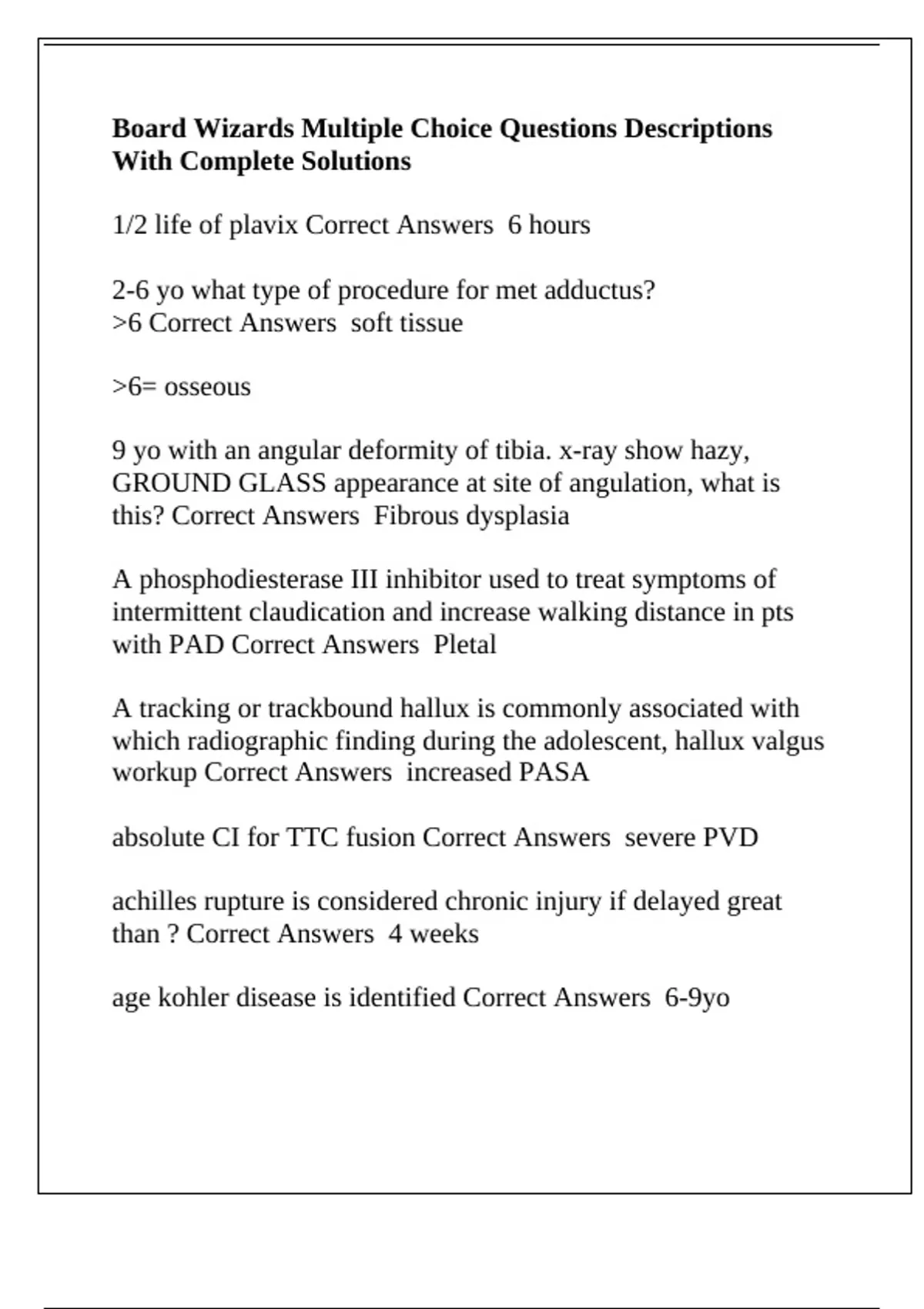 with PAD Correct Answers Pletal