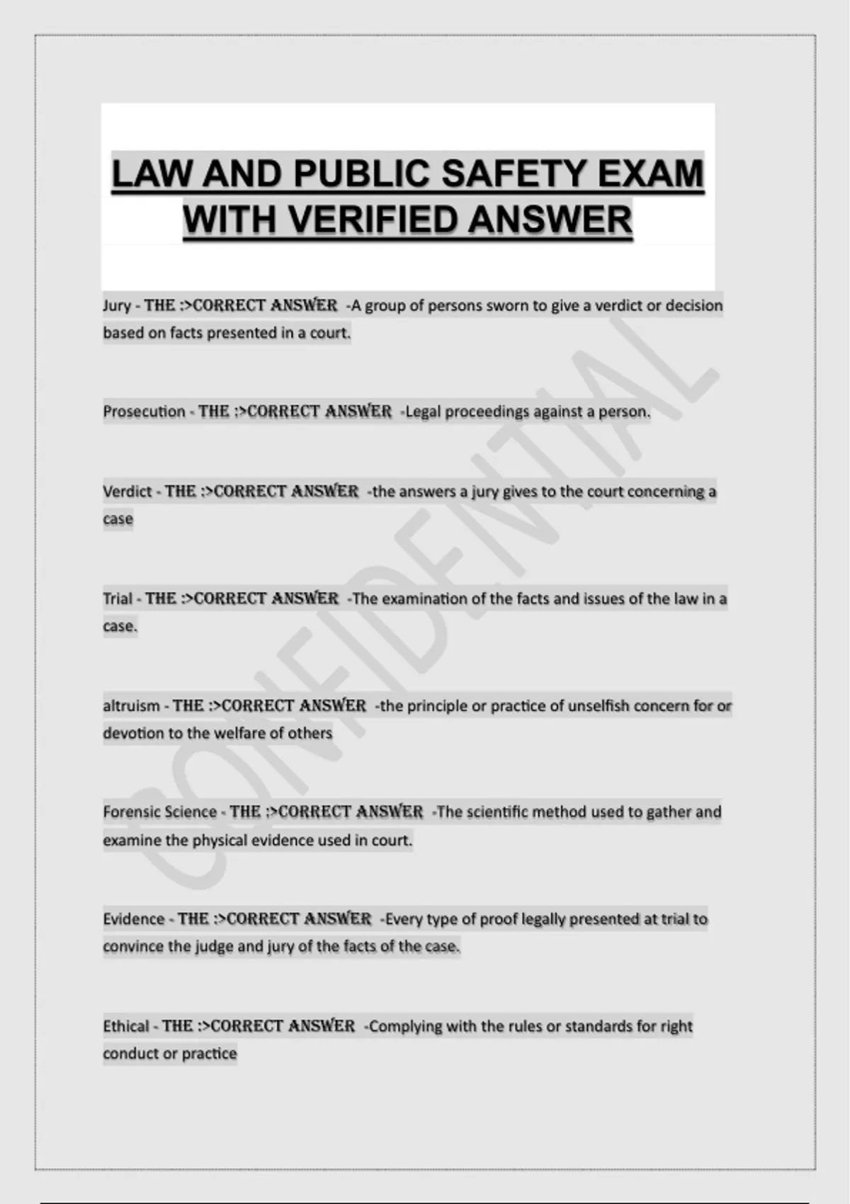 Verdict - THE :>CORRECT ANSWER -the answers a jury gives to the court concerning a