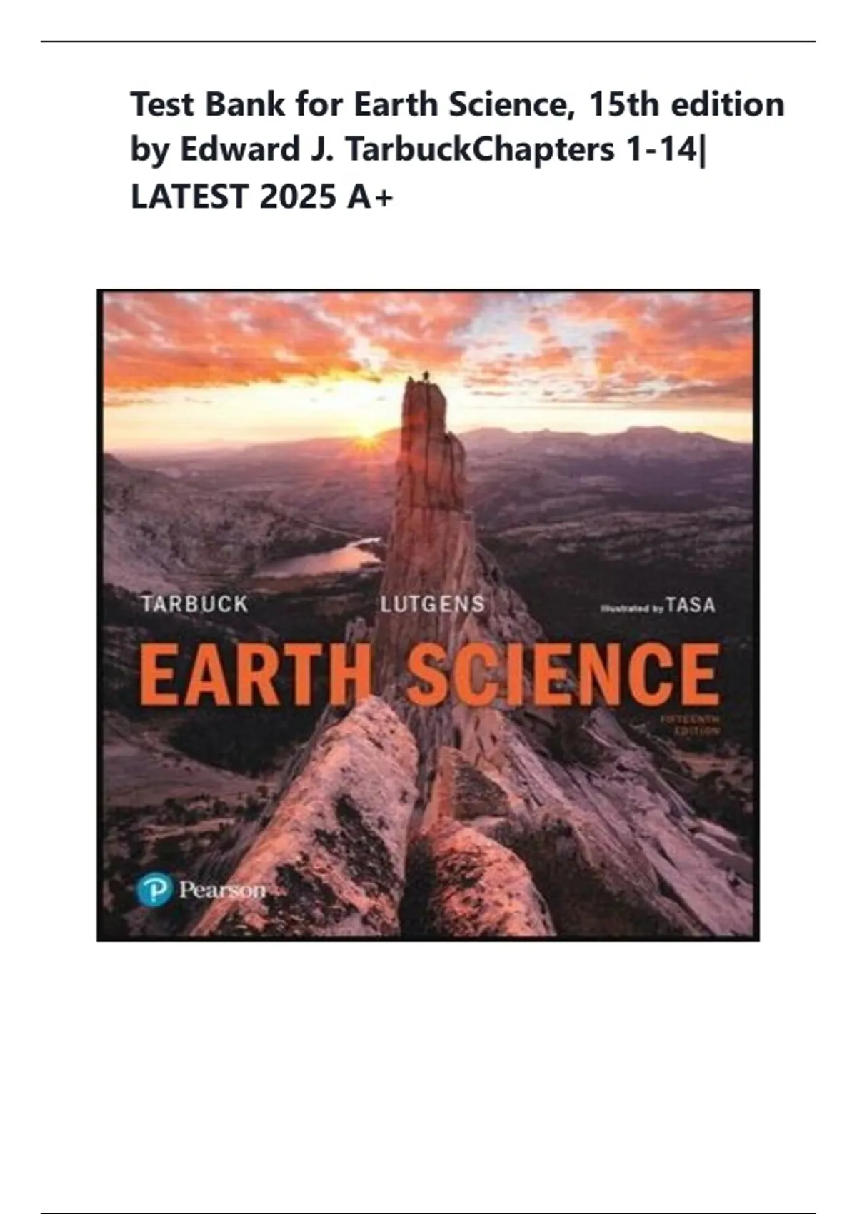 Test Bank for Earth Science, 15th edition by Edward J. Tarbuck|9780134673943| Chapters 1-14| LATEST