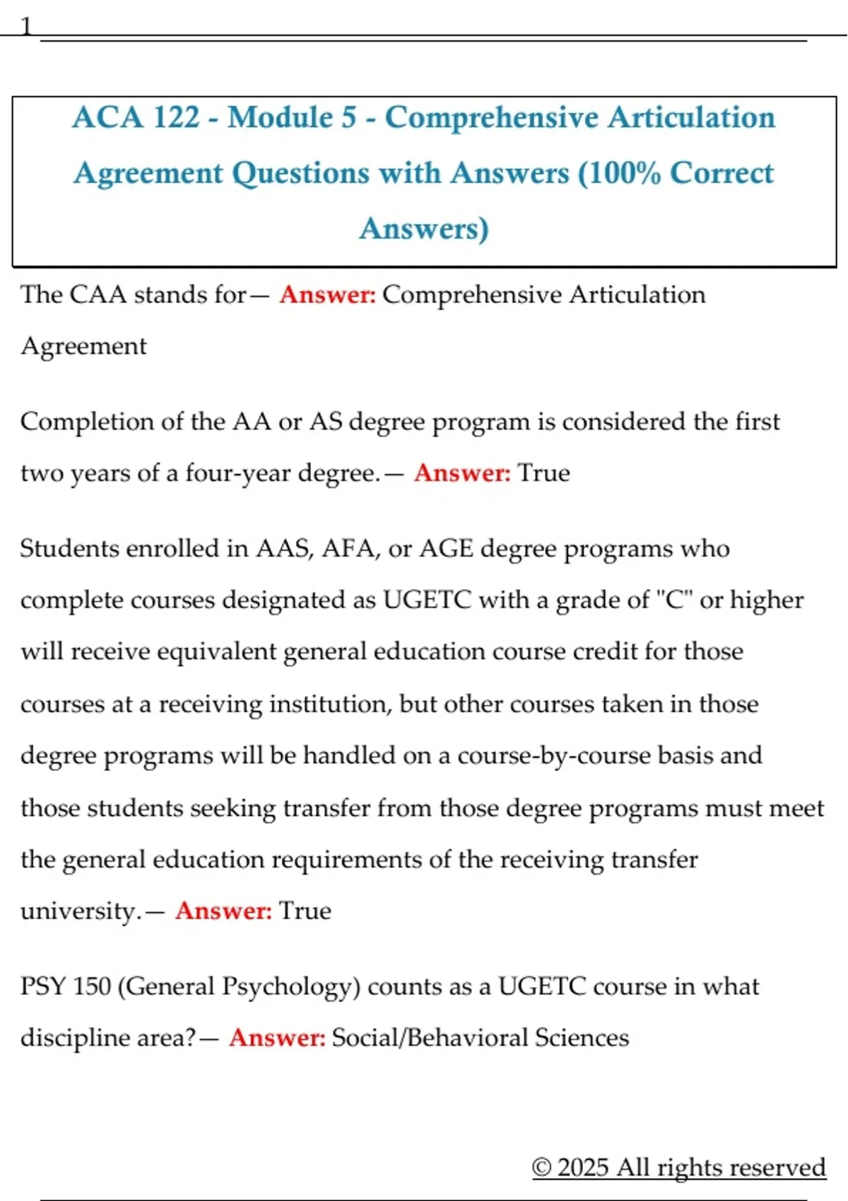 ACA 122 - Module 5 - Comprehensive Articulation