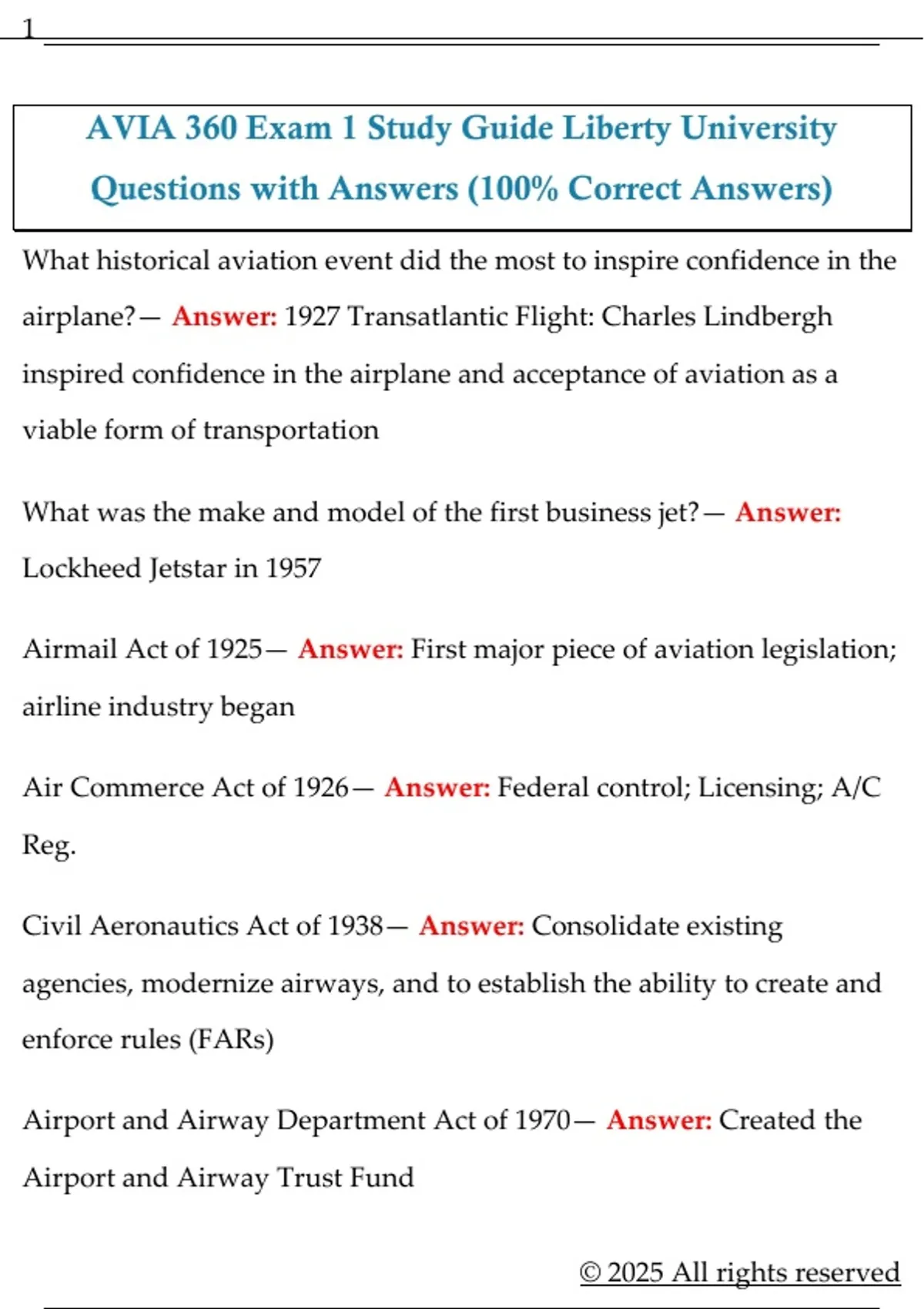 AVIA 360 Exam 1 Study Guide Liberty University Questions with Answers (100% Correct Answers)