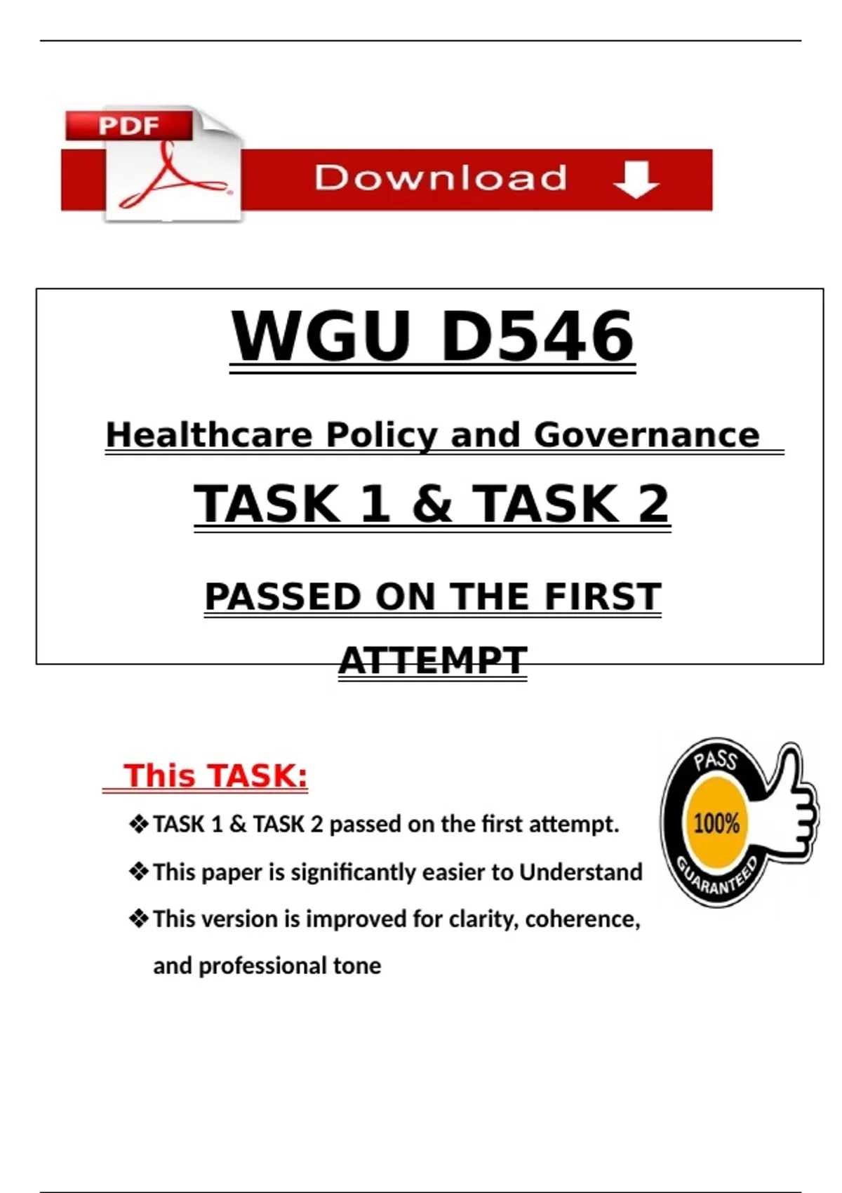 D546 Task 1 & Task 2 (Passed First Attempt) Healthcare Policy and Governance – Complete & Verified D546 Task 1 & Task 2 (Passed First Attempt) Healthcare Policy and Governance – Complete & Verified D546 Task 1 & Task 2 (Passed First Attempt) Healthcare Policy and Governance – Complete & Verified D546 Task 1 & Task 2 (Passed First Attempt) Healthcare Policy and Governance – Complete & Verified