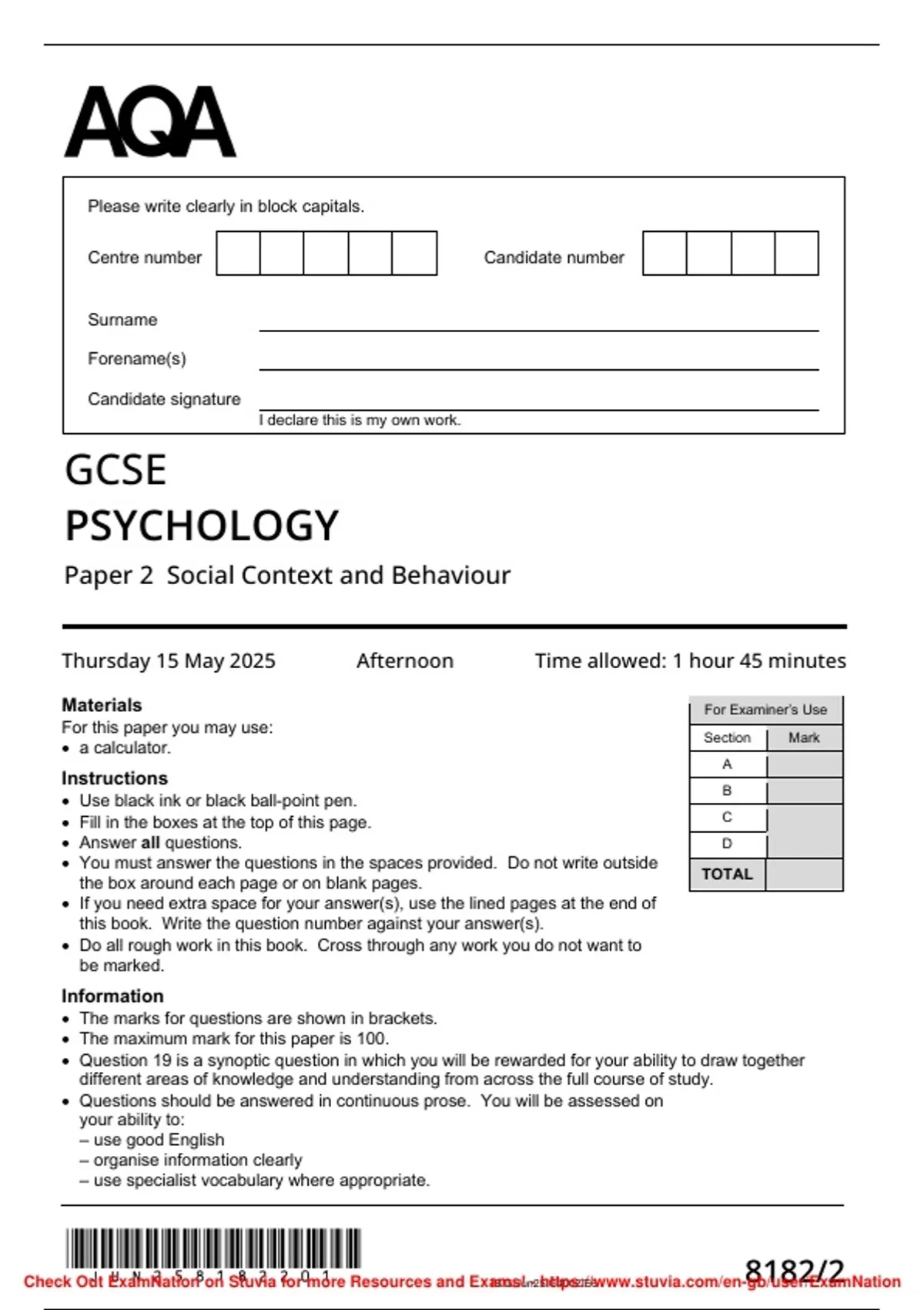 Check Out ExamNation on Stuvia for more Resources and Exams! 8182/2