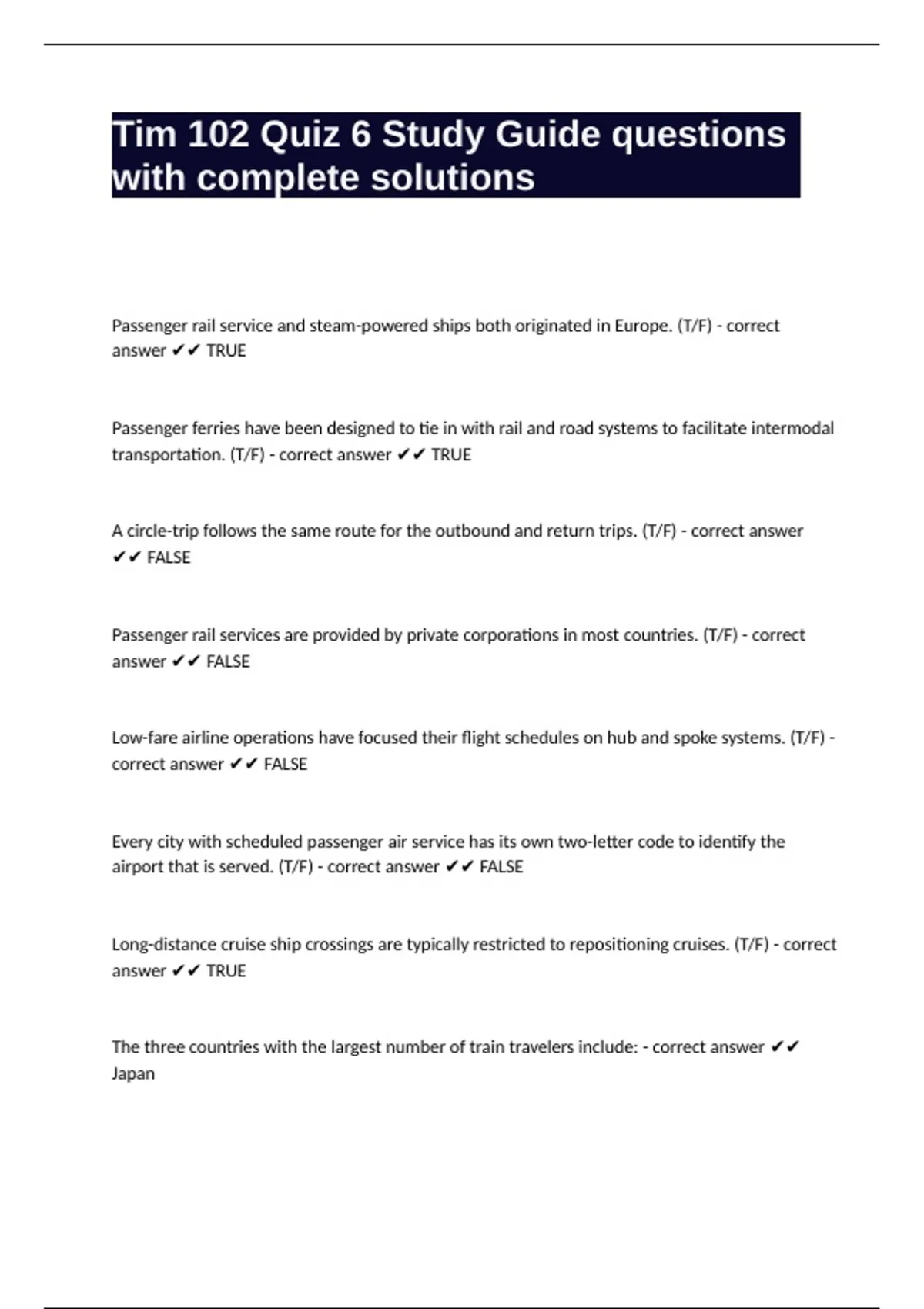 airport that is served. (T/F) - correct answer ✔✔ FALSE