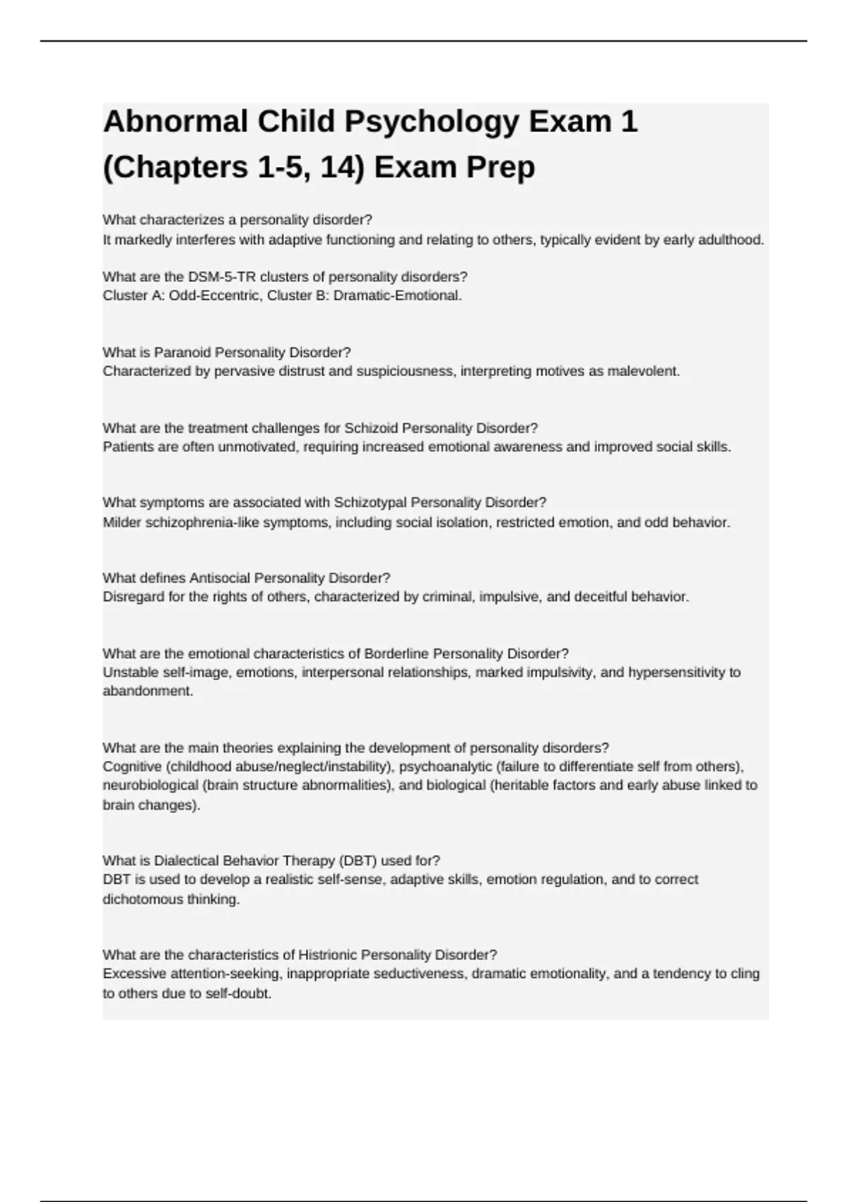 Cluster A: Odd-Eccentric, Cluster B: Dramatic-Emotional.