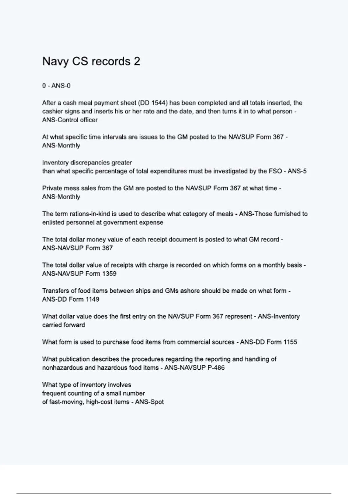 Navy CS Records 2 Study Guide 2025/2026 – Comprehensive Culinary Specialist Documentation, Training Procedures & Advanced Practice Nurse Exam Preparation