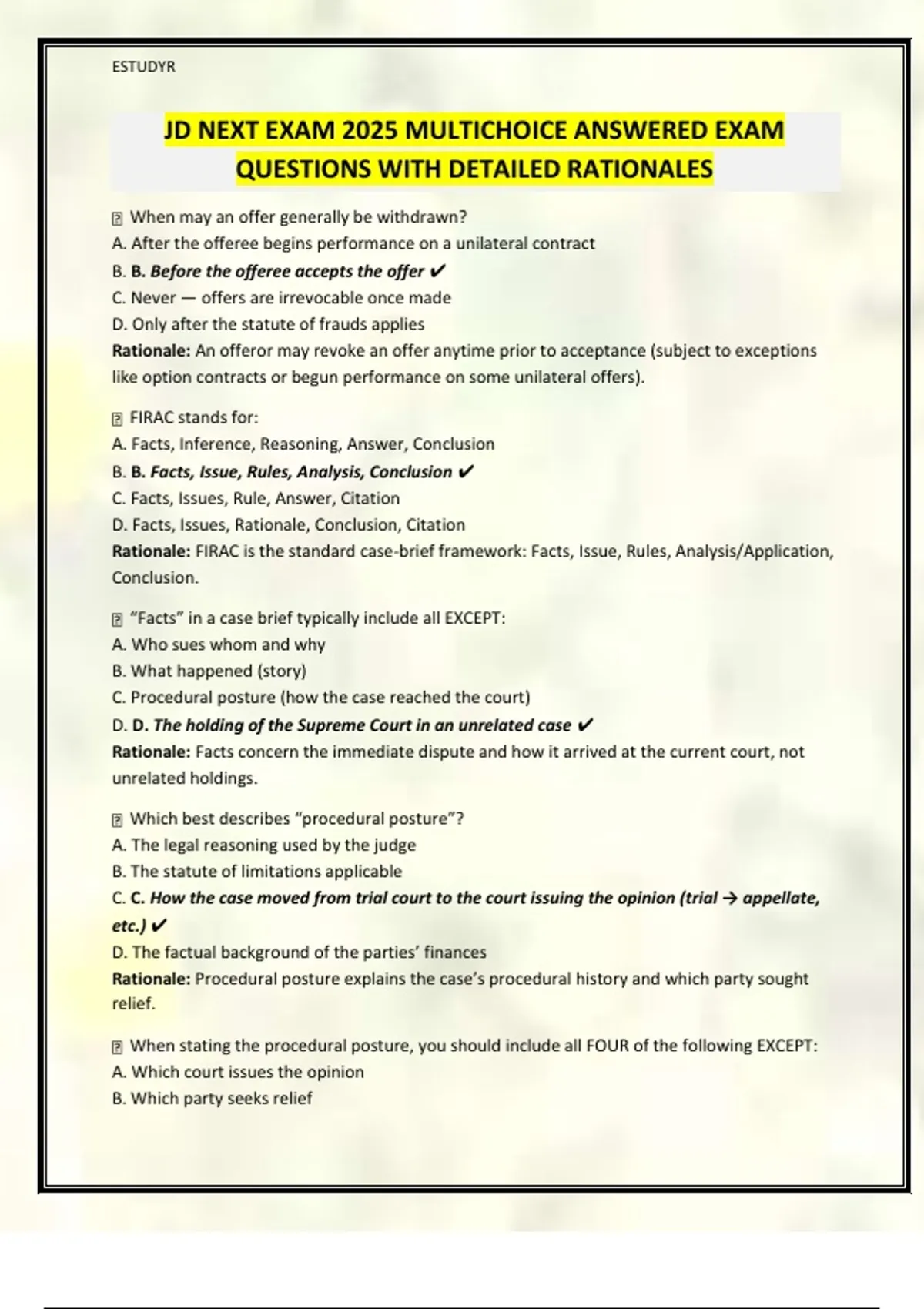 JD NEXT EXAM 2025 MULTICHOICE ANSWERED EXAM
