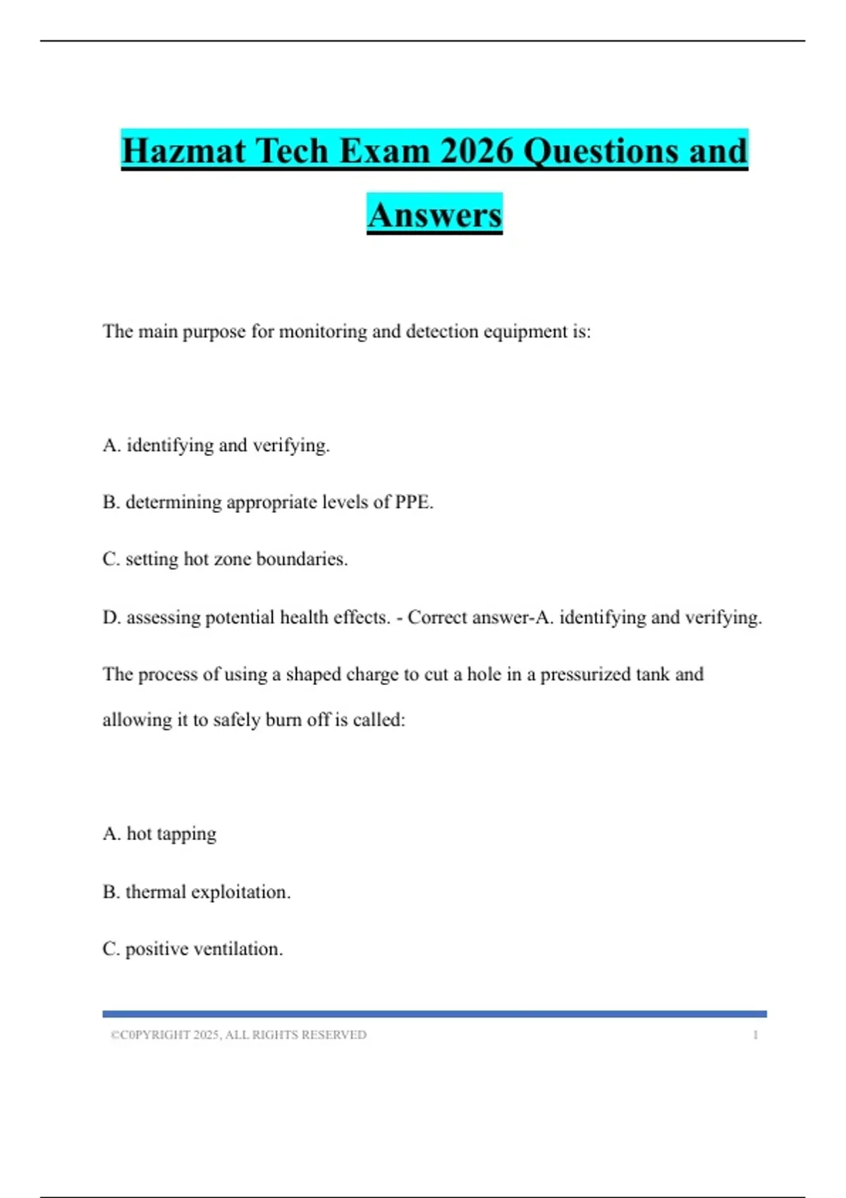 Hazmat Tech Exam 2026 Questions and