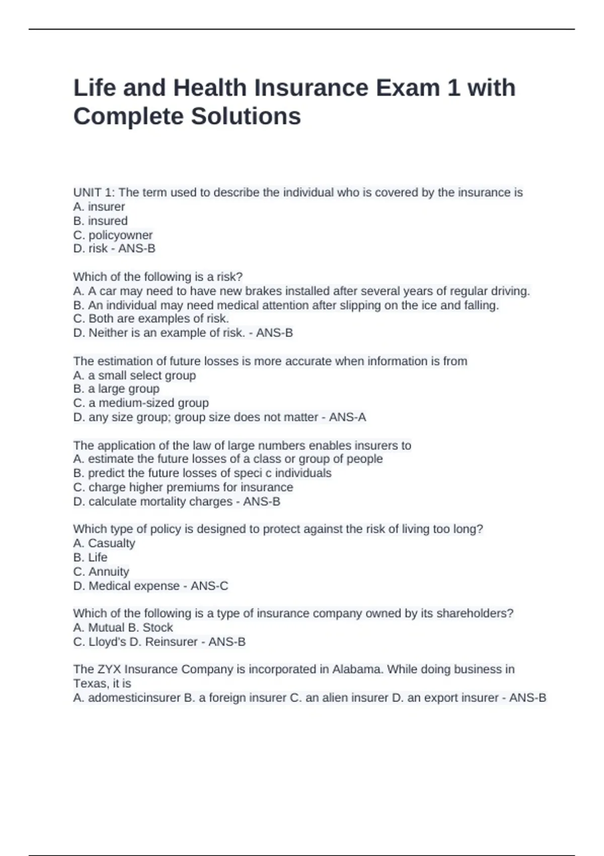 UNIT 1: The term used to describe the individual who is covered by the insurance is