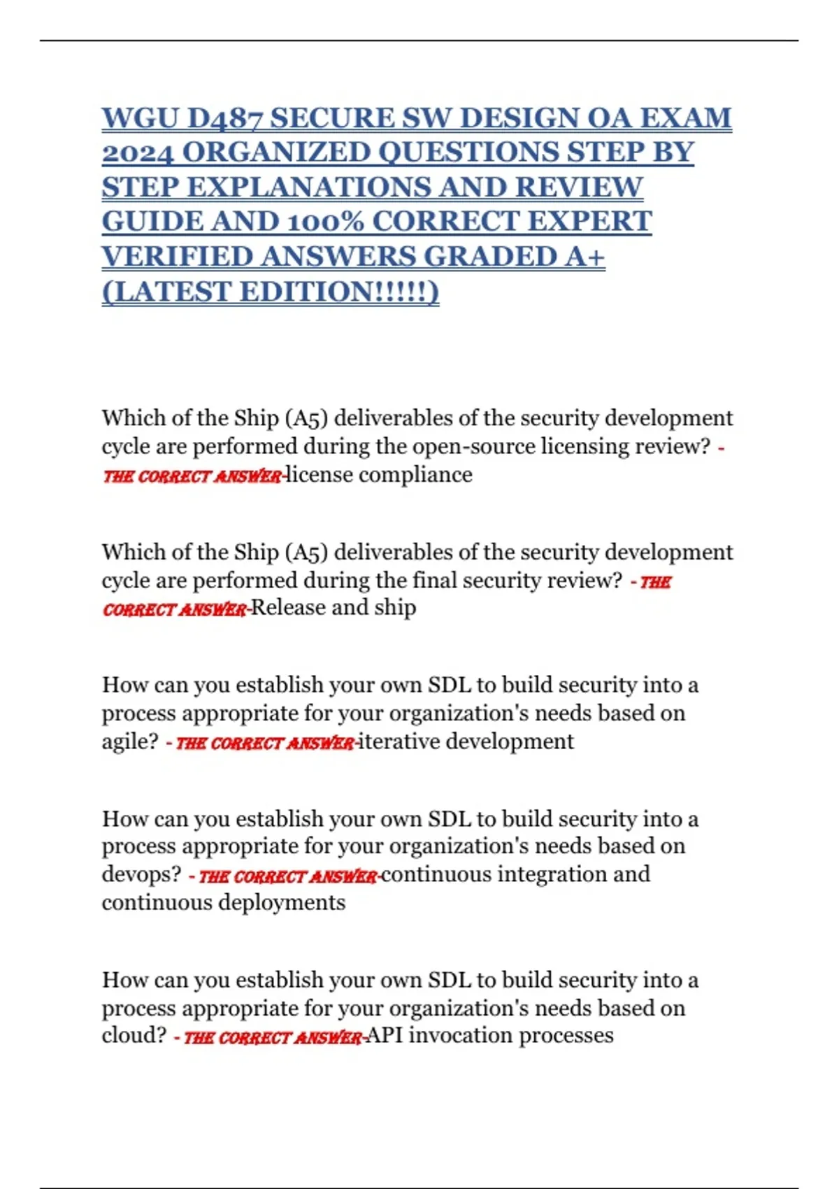THE CORRECT ANSWER-A1 Security Assessment