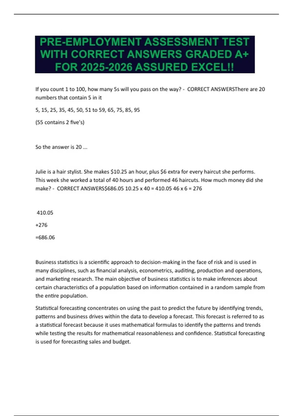 WITH CORRECT ANSWERS GRADED A+