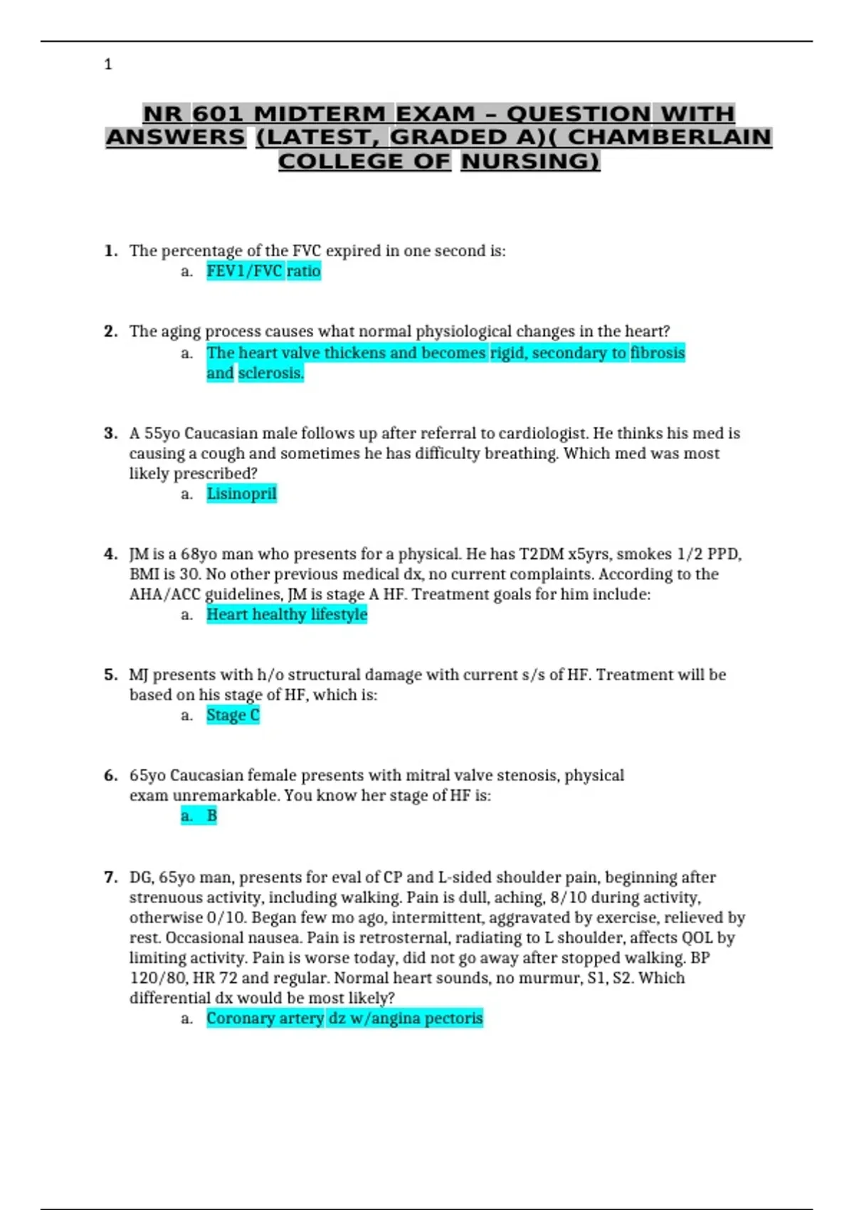 ANSWERS (LATEST, GRADED A)( CHAMBERLAIN