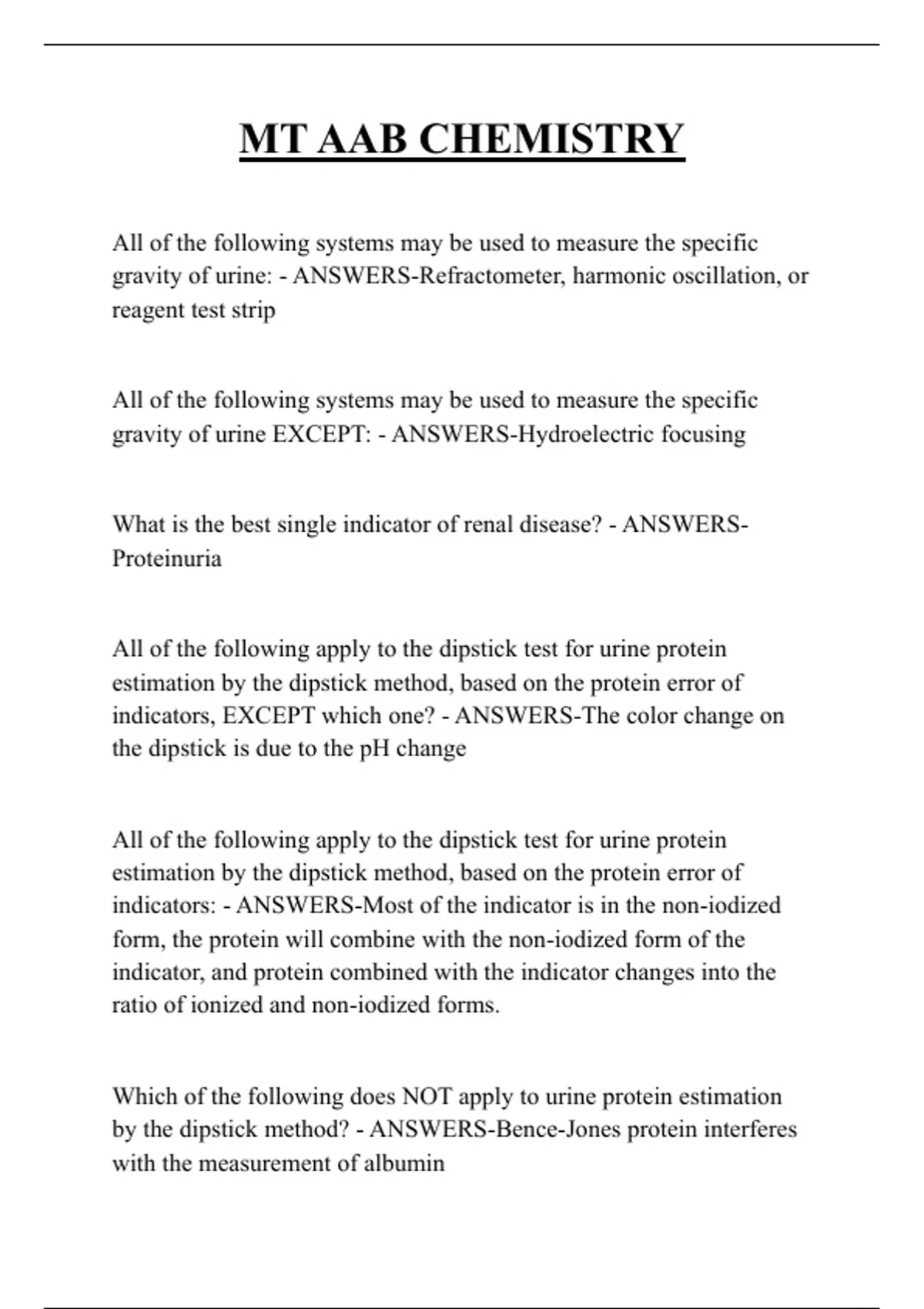 ANSWERS-WBCs in the urine must be accompanied by proteinuria