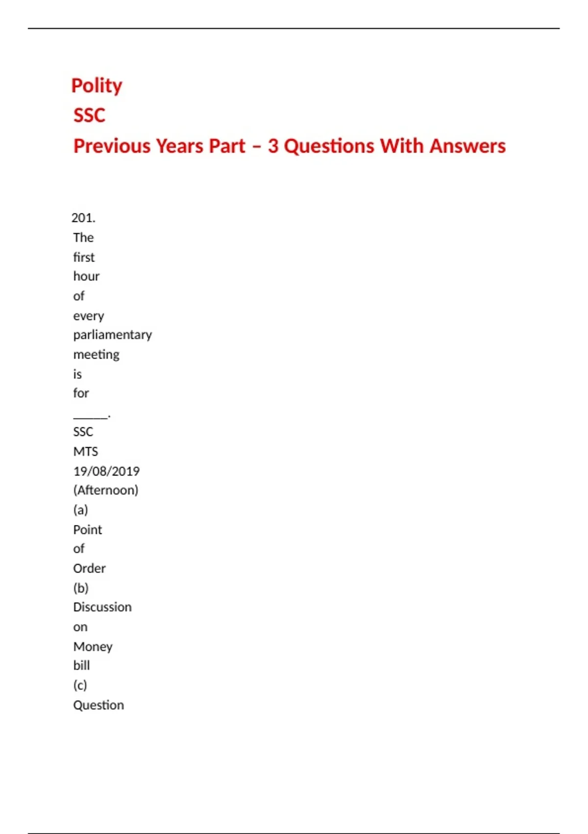 Polity SSC Previous Years Part – 3 Questions With Answers