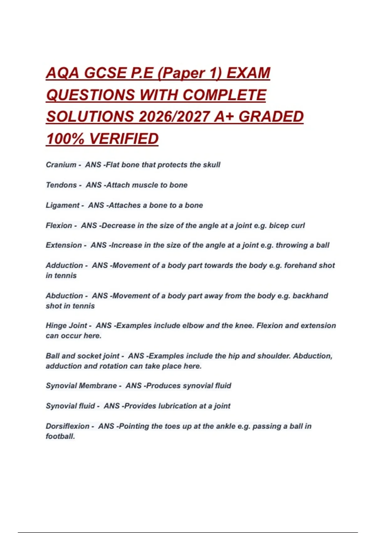 Ball and socket joint - ANS -Examples include the hip and shoulder. Abduction,