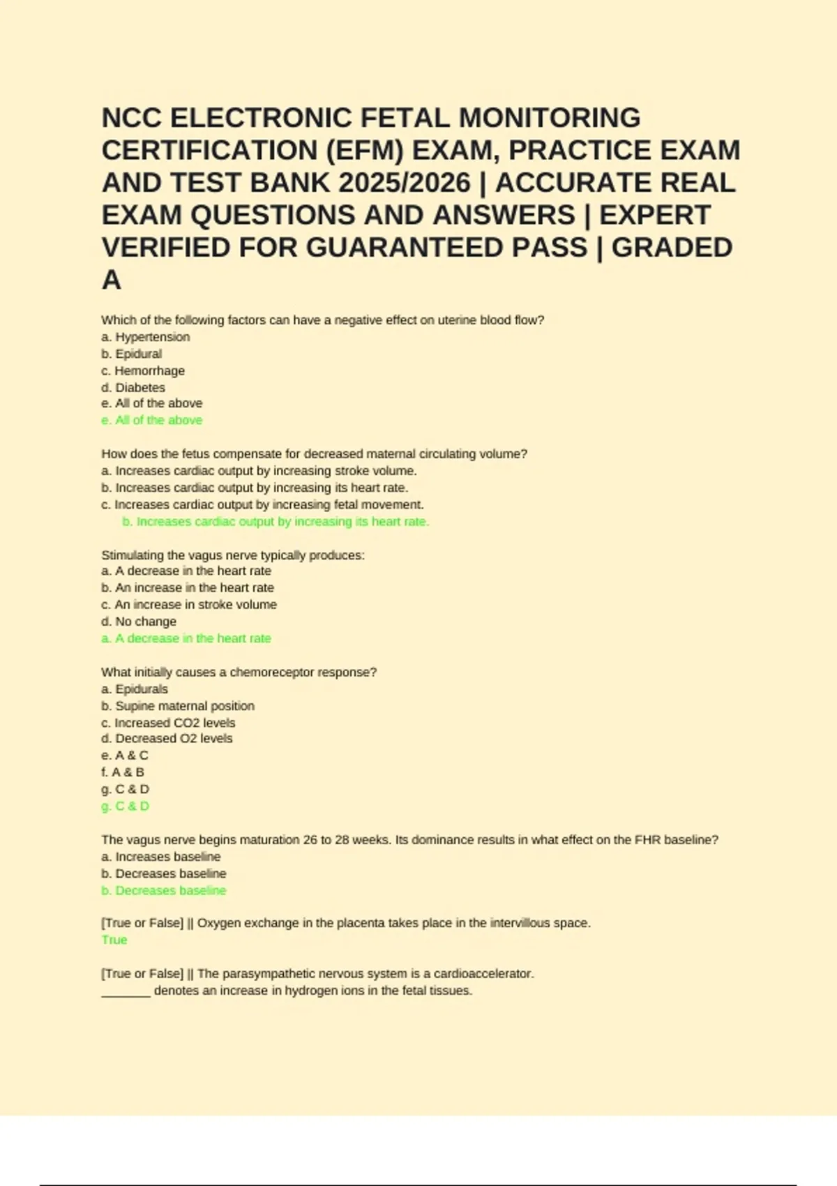 NCC ELECTRONIC FETAL MONITORING CERTIFICATION (EFM) EXAM, PRACTICE EXAM