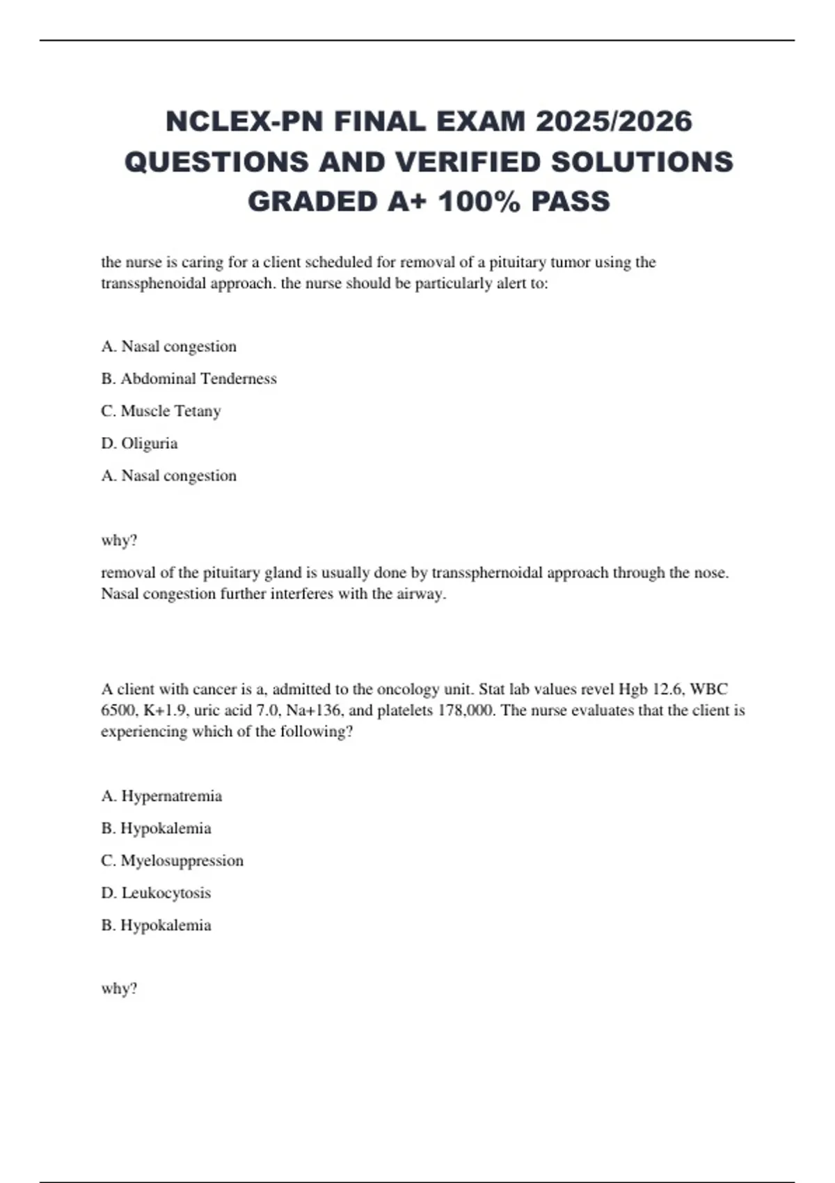 the nurse is caring for a client scheduled for removal of a pituitary tumor using the