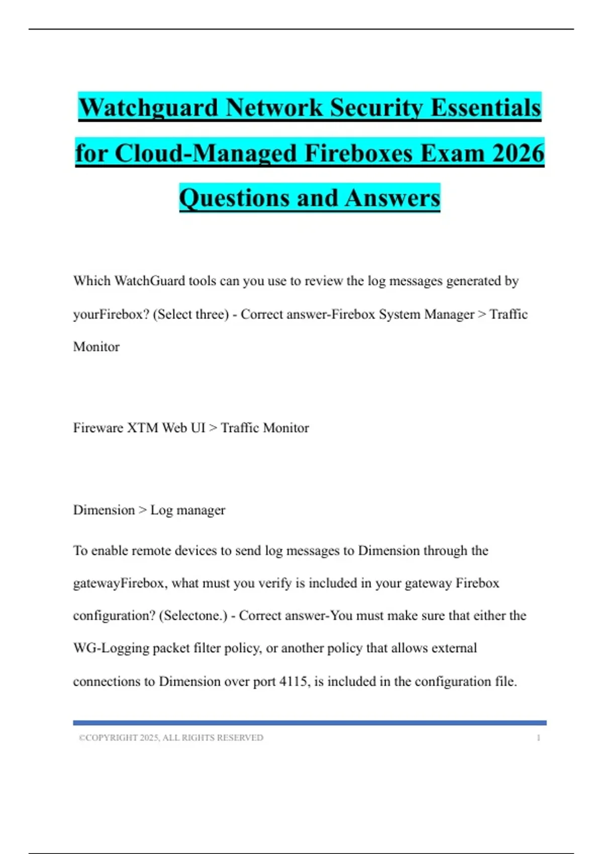 Watchguard Network Security Essentials for Cloud-Managed Fireboxes Exam 2026 Questions and Answers