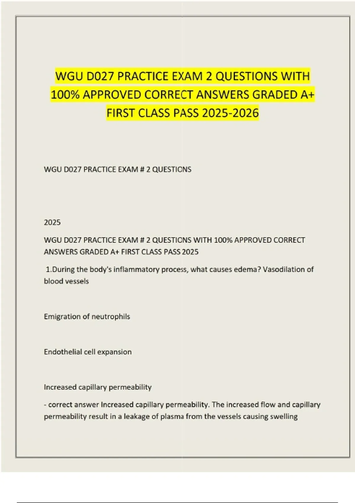 WGU D027 PRACTICE EXAM 2 QUESTIONS WITH 100% APPROVED CORRECT ANSWERS GRADED A+ FIRST CLASS PASS