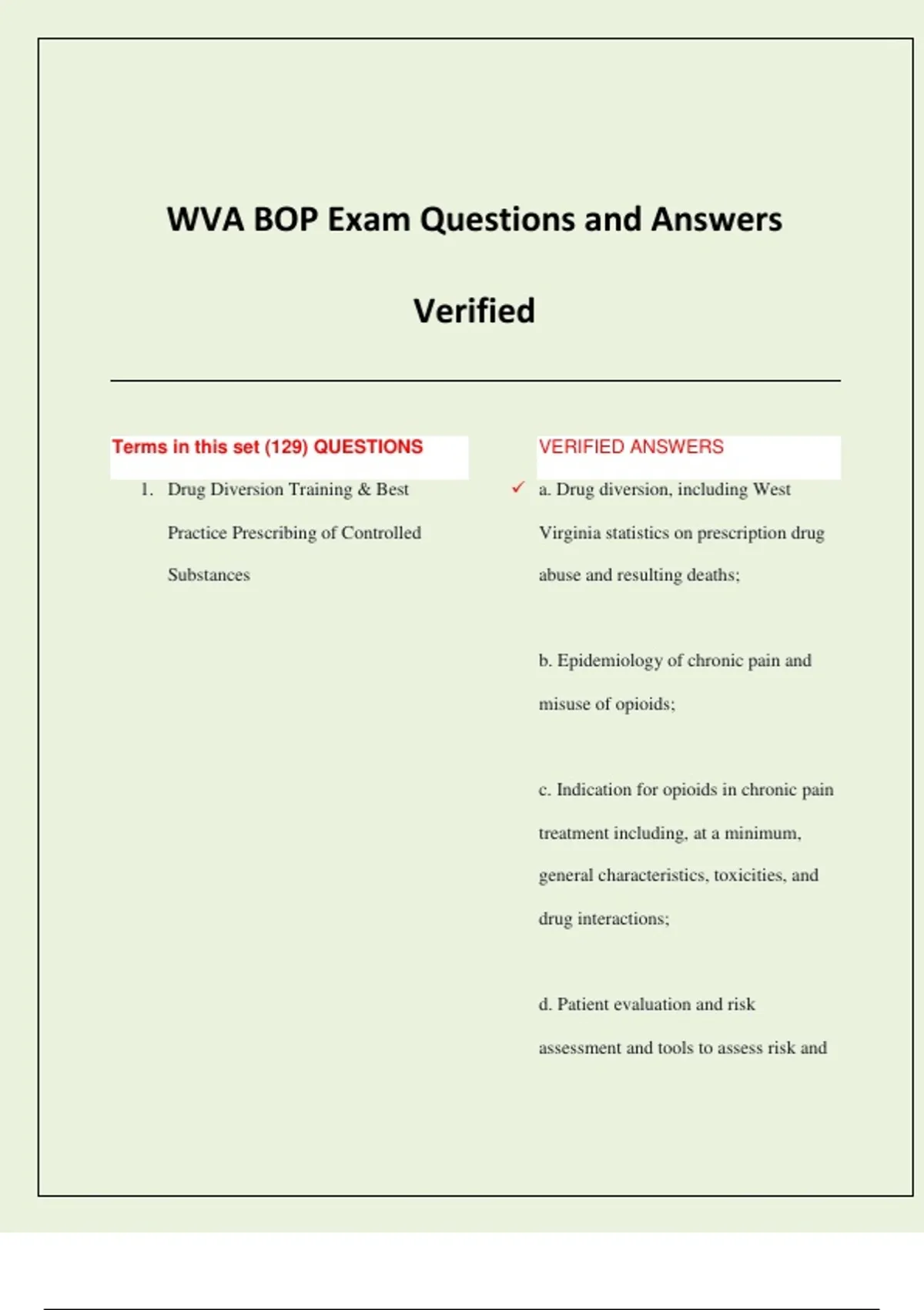 WVA BOP Exam Questions and Answers Verified