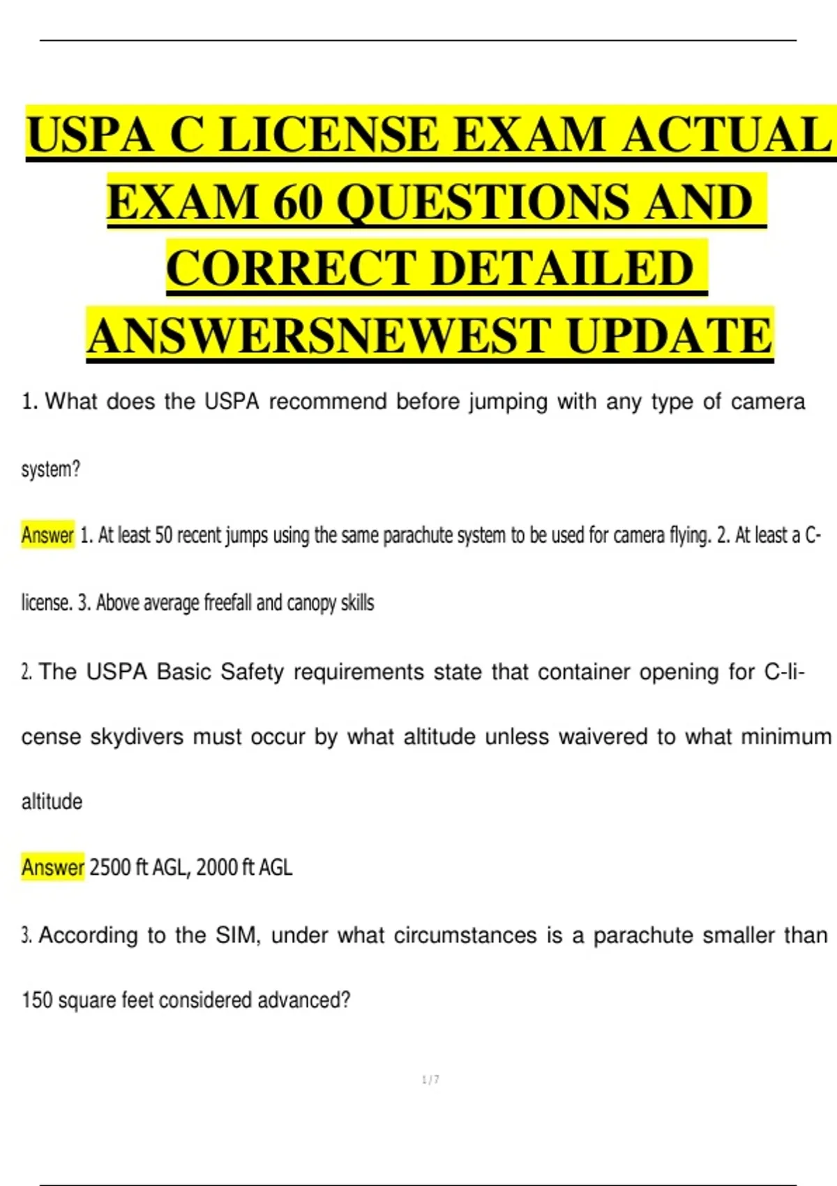 USPA C LICENSE EXAM ACTUAL
