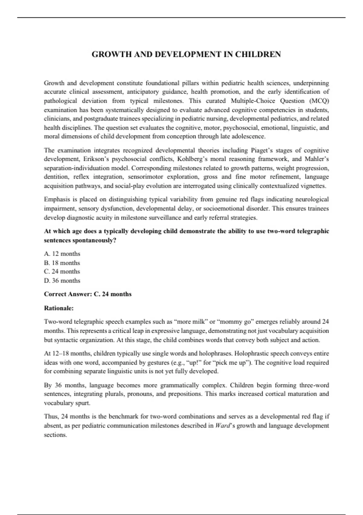 pathological deviation from typical milestones. This curated Multiple-Choice Question (MCQ)