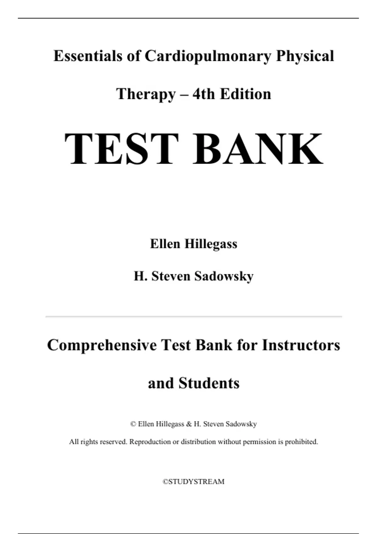 , Test Bank: Essentials of Cardiopulmonary Physical Therapy, 4th Edition, Hillegass