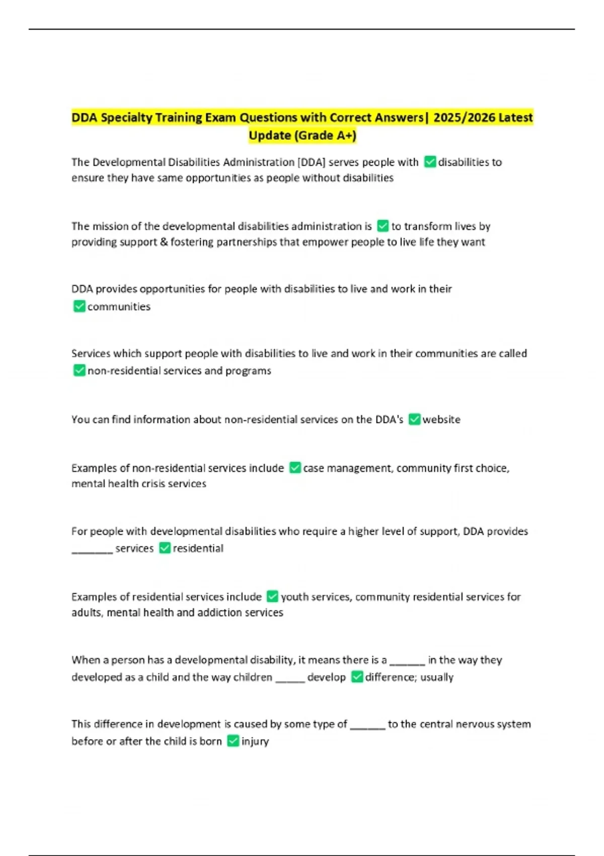 DDA Specialty Training Exam Questions with Correct Answers| 2025/2026 Latest Update (Grade A+)