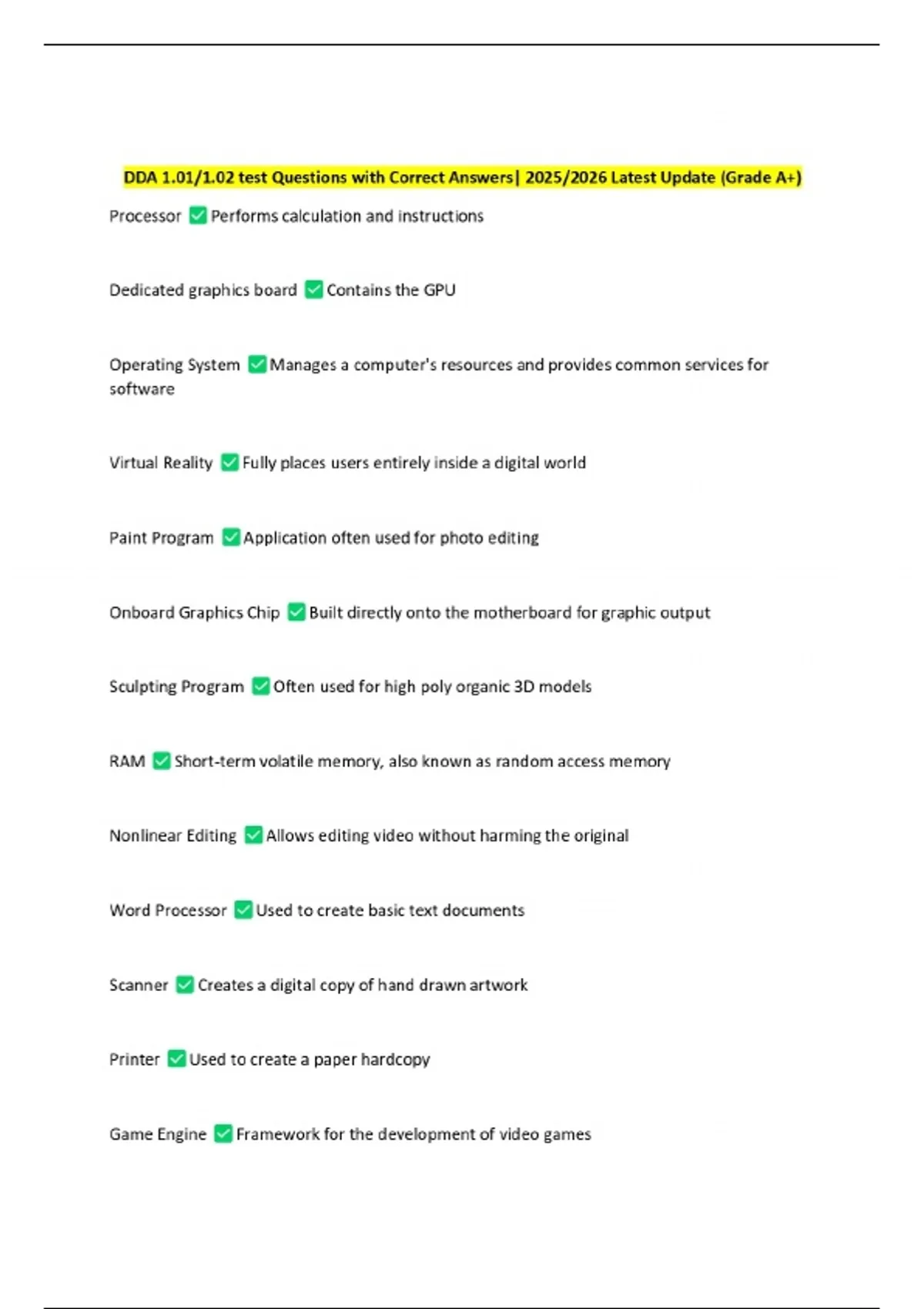 DDA 1.01/1.02 test Questions with Correct Answers| 2025/2026 Latest Update (Grade A+)
