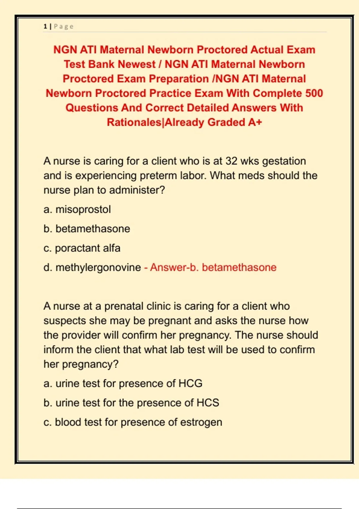 Test Bank Newest / NGN ATI Maternal Newborn
