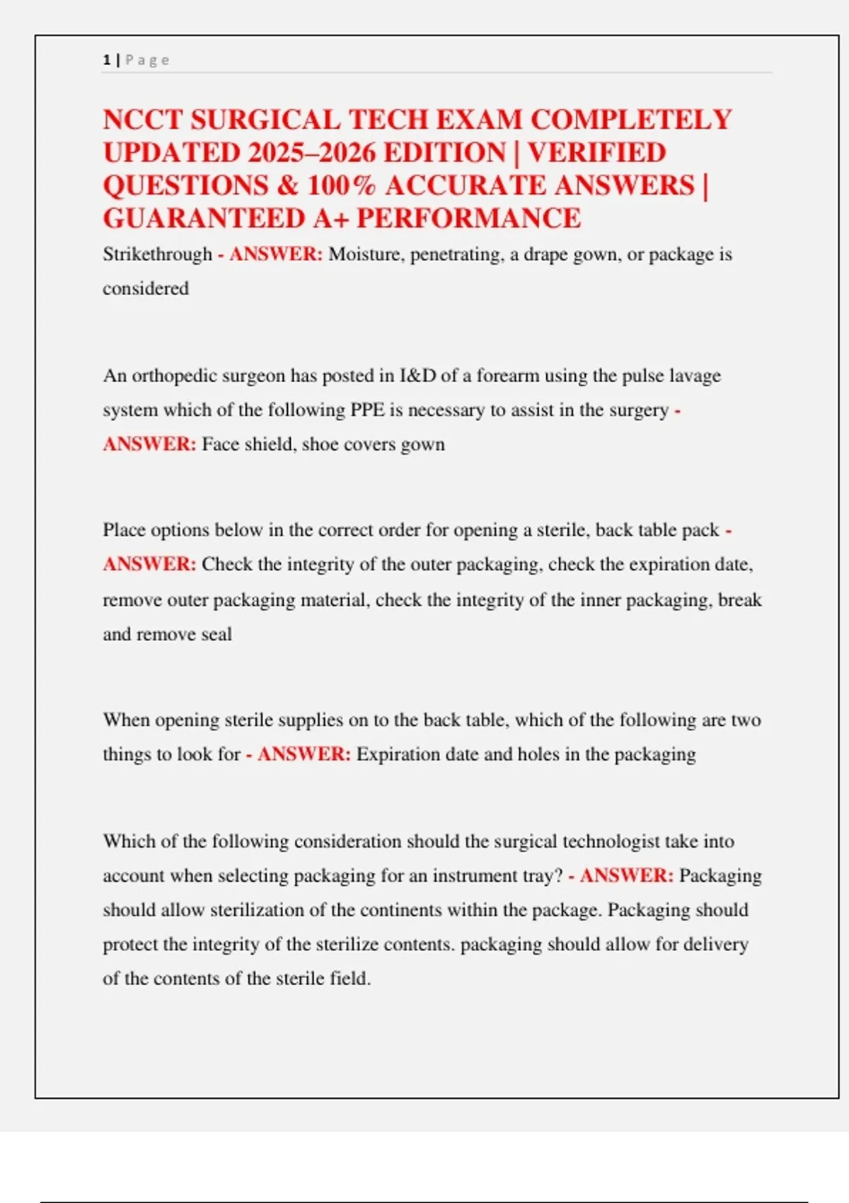 NCCT SURGICAL TECH EXAM COMPLETELY
