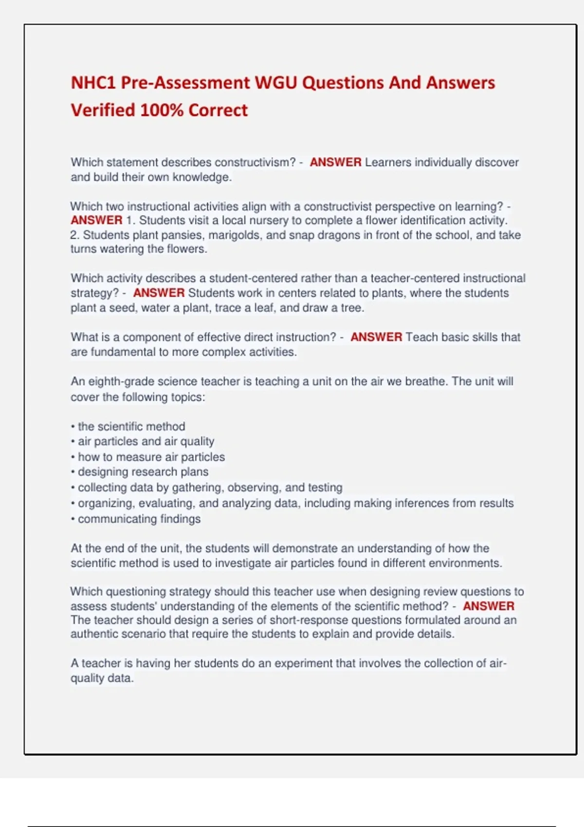 assess students' understanding of the elements of the scientific method? - ANSWER