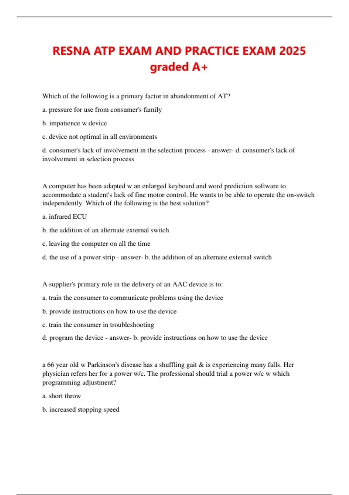 RESNA ATP EXAM AND PRACTICE EXAM 2025
