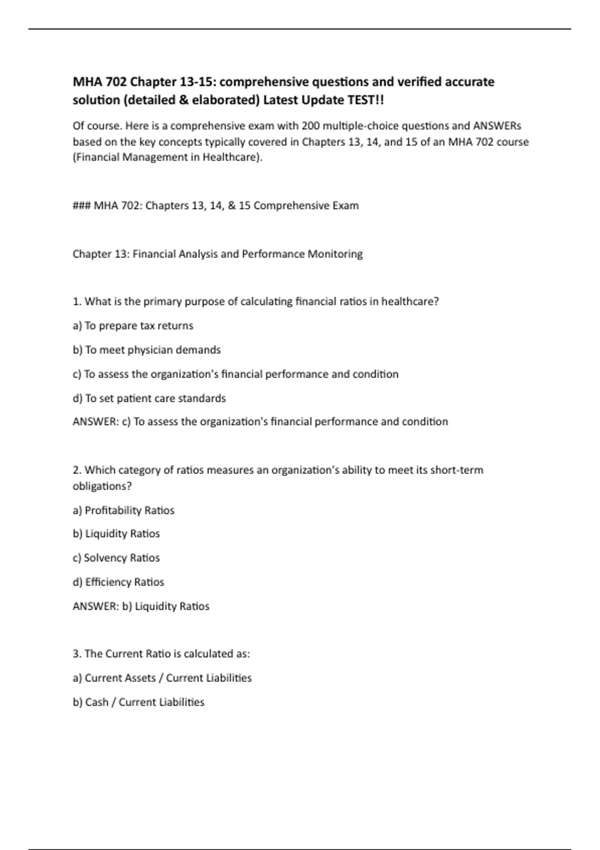 MHA 702 Chapter 13-15: comprehensive questions and verified accurate solution (detailed & elaborated) Latest Update TEST!!
