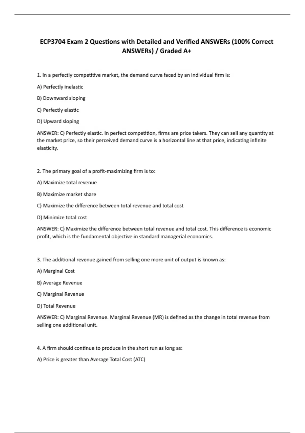 ECP3704 Exam 2 Questions with Detailed and Verified ANSWERs (100% Correct