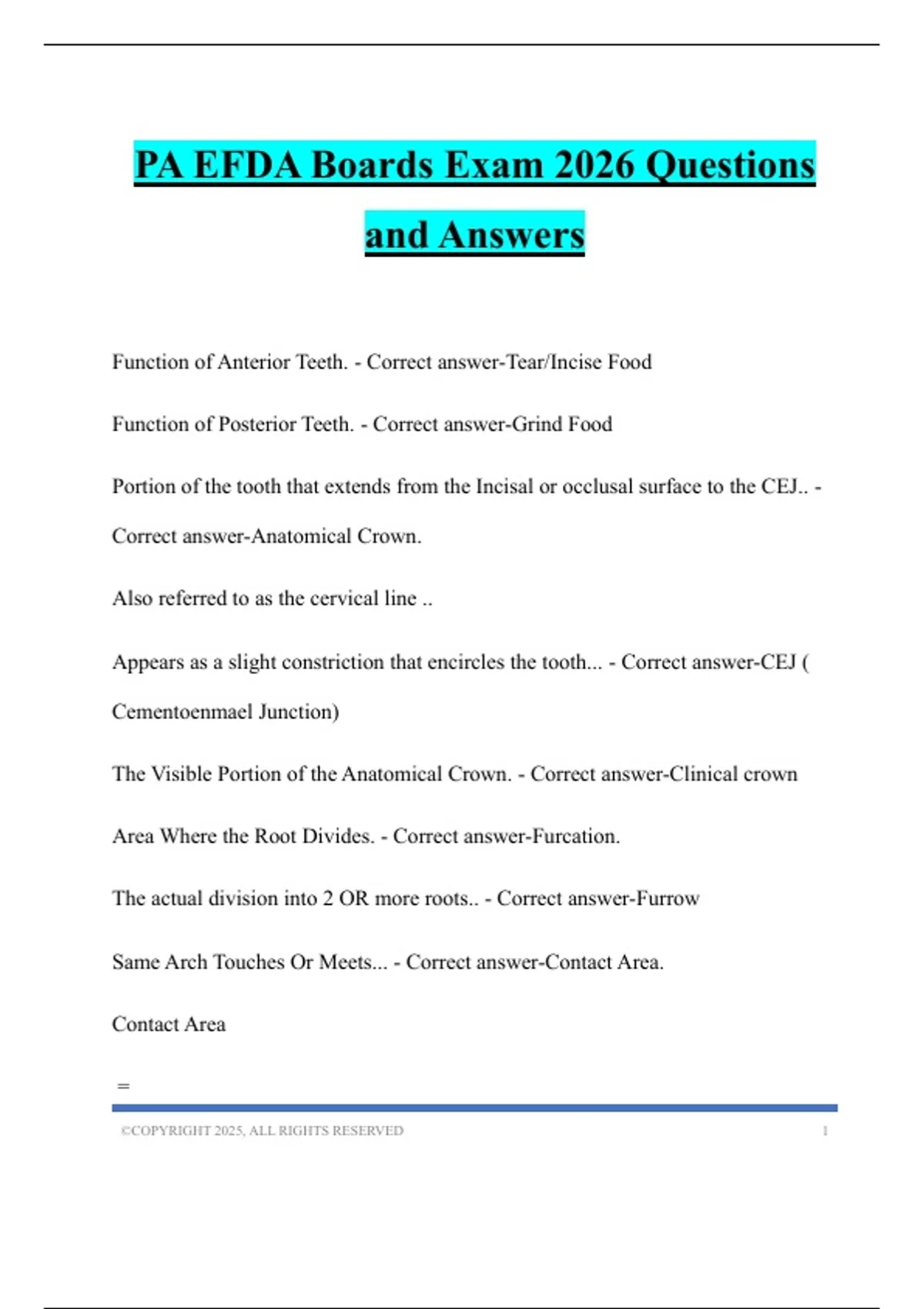PA EFDA EXAM 2026 Questions and Answers