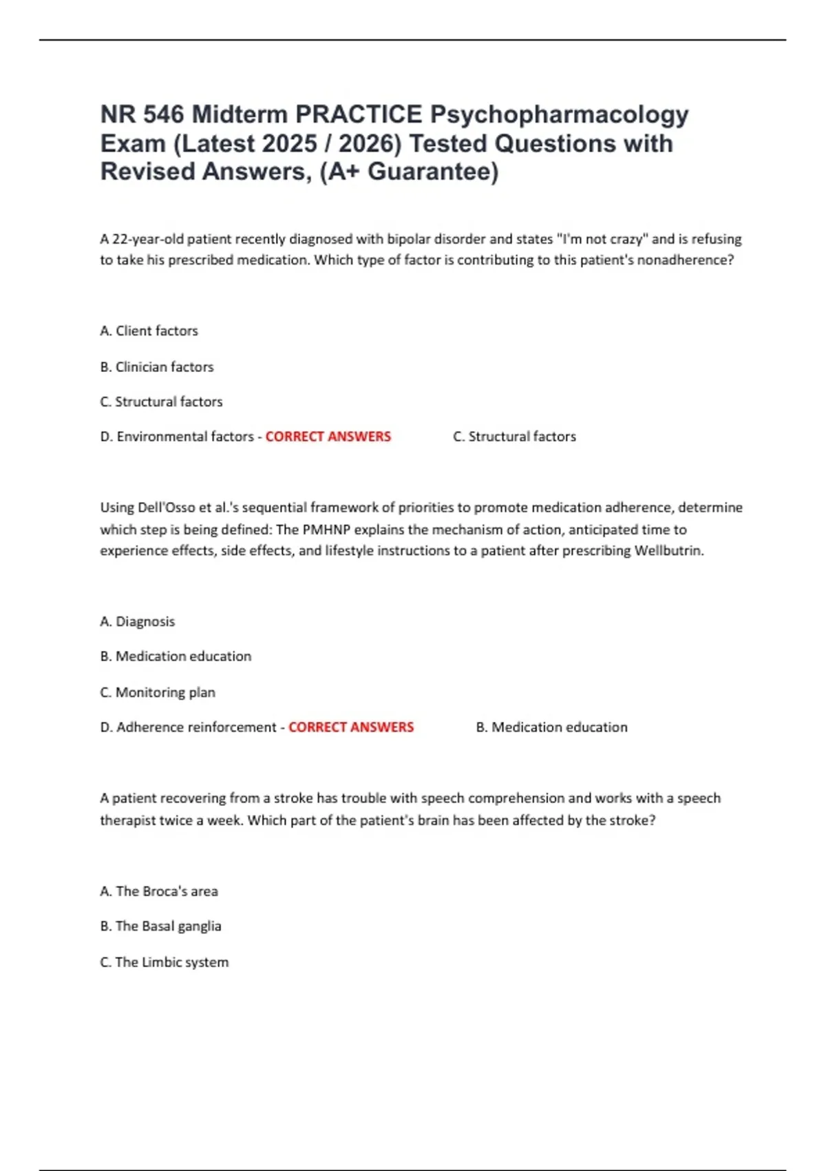 D. Adherence reinforcement - CORRECT ANSWERS B. Medication education
