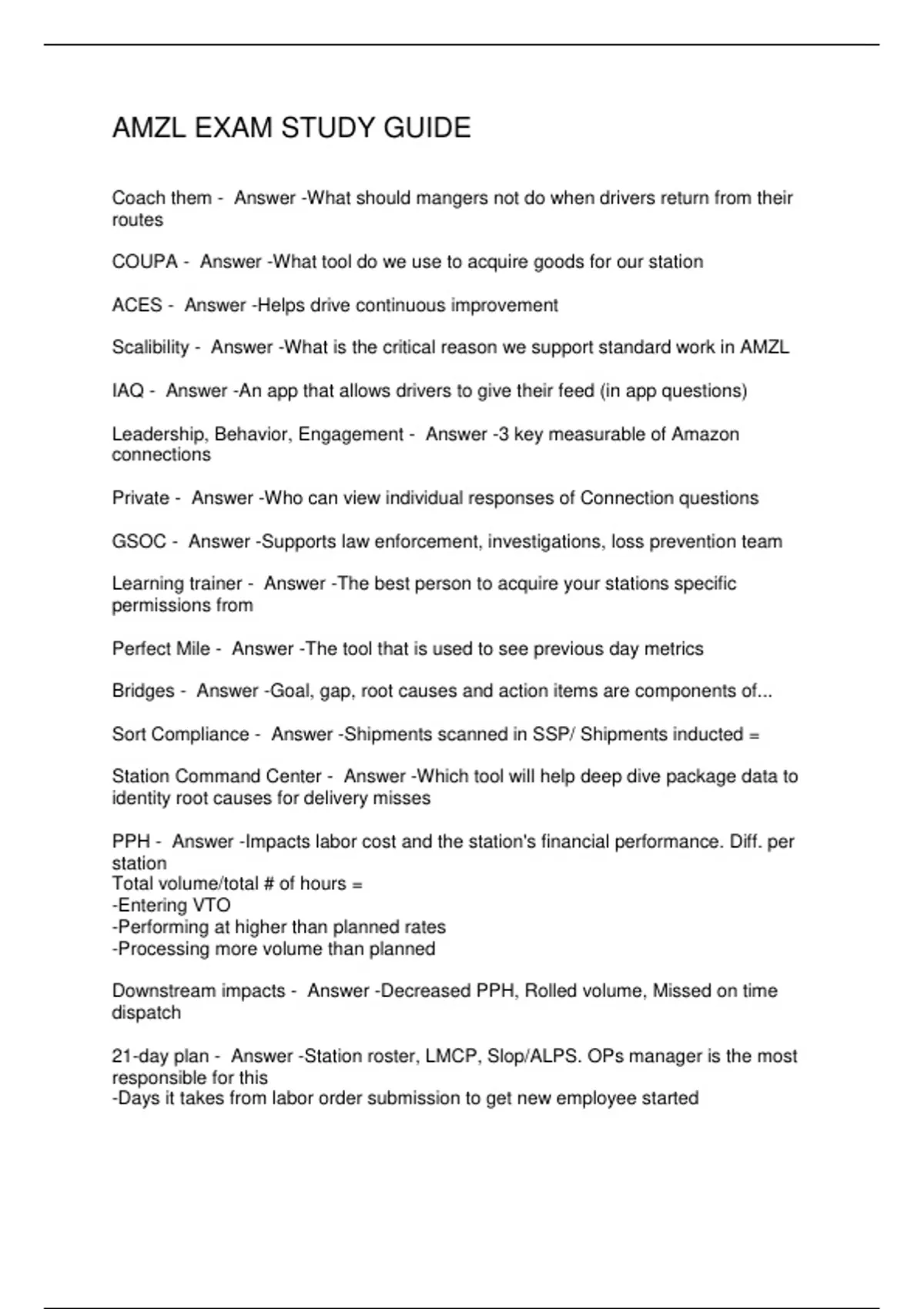 AMZL EXAM STUDY GUIDE