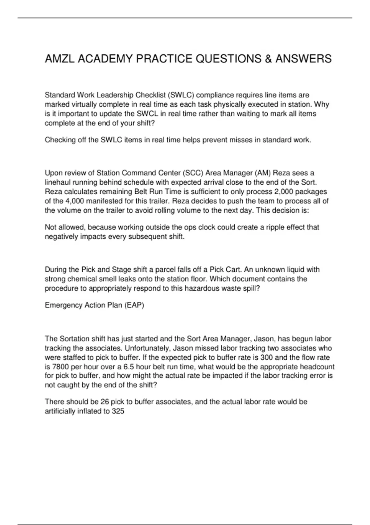 AMZL ACADEMY PRACTICE QUESTIONS & ANSWERS