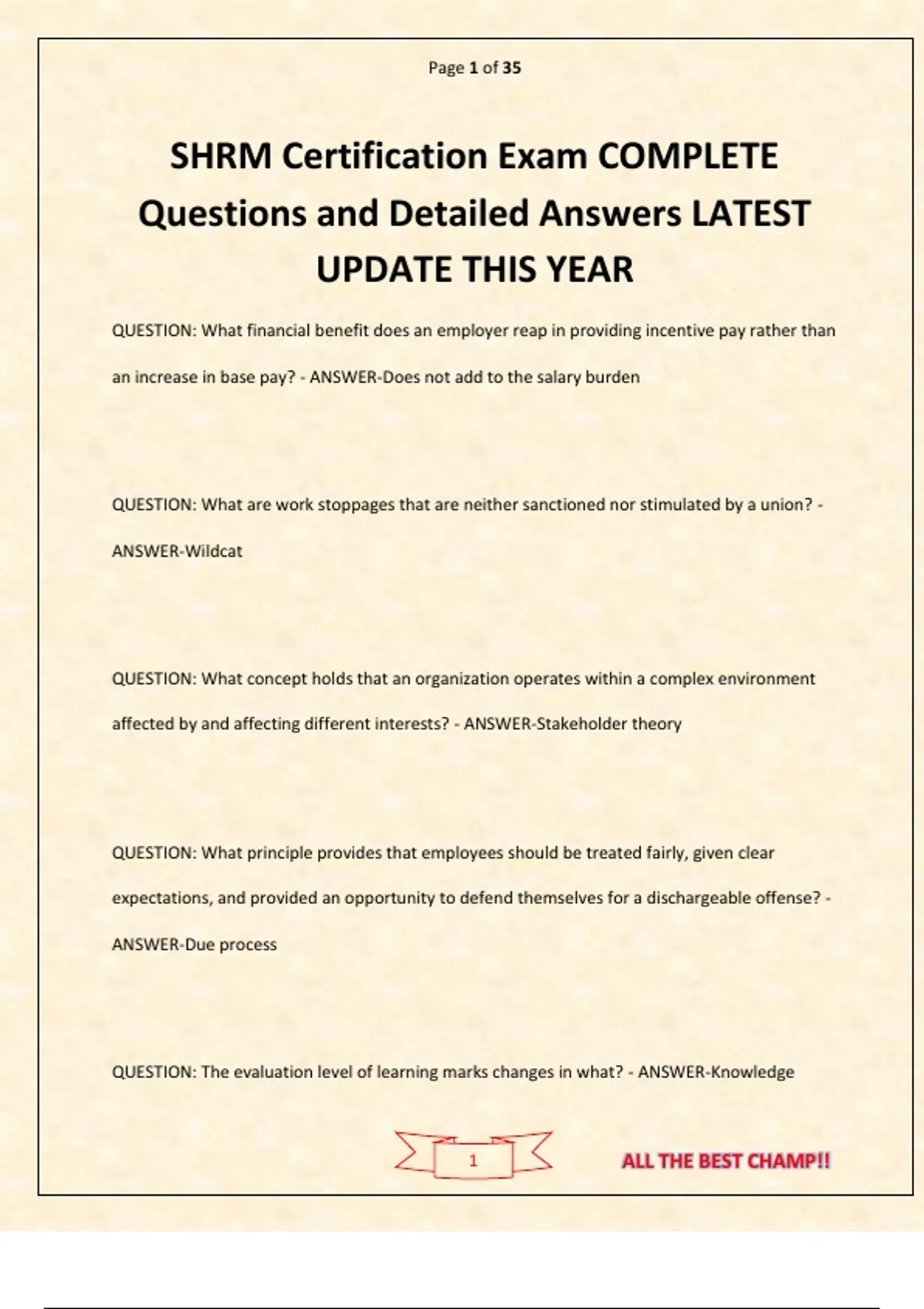 SHRM Certification Exam COMPLETE