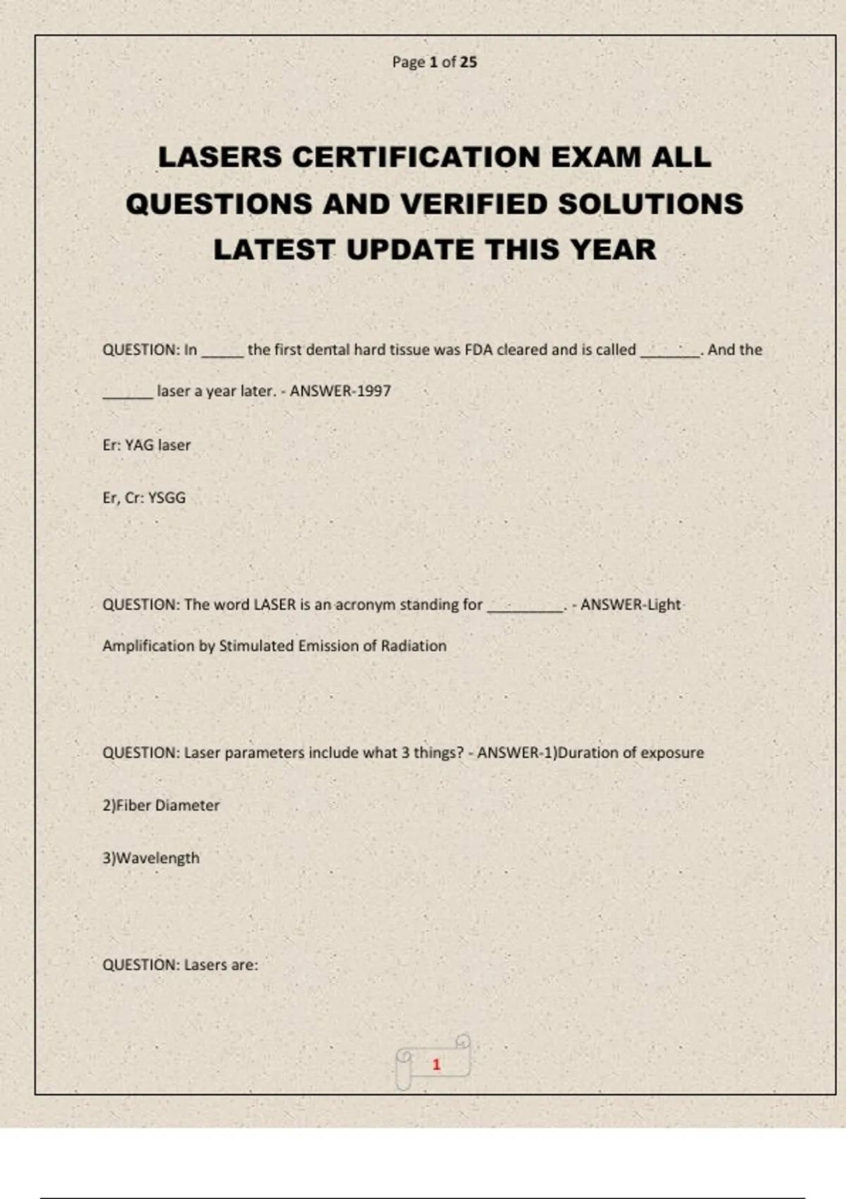 LASERS CERTIFICATION EXAM ALL QUESTIONS AND VERIFIED SOLUTIONS LATEST UPDATE THIS YEAR