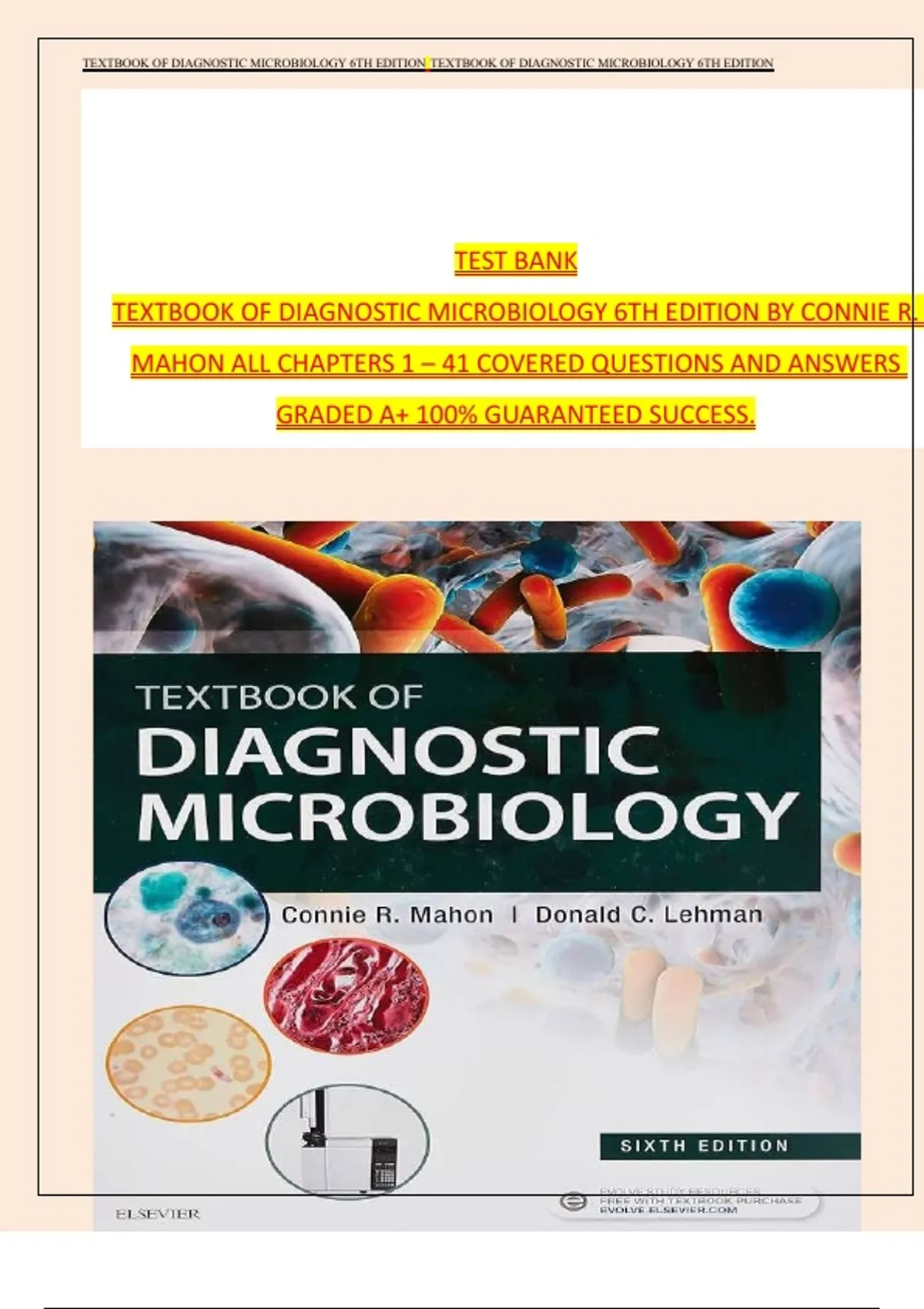 Mahon: Textbook of Diagnostic Microbiology, 6th Edition Test Bank