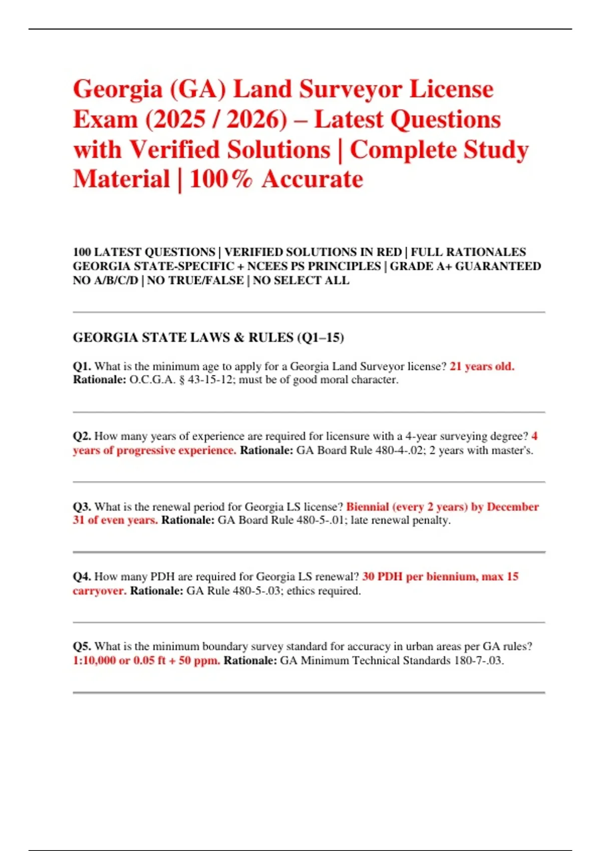 GEORGIA STATE-SPECIFIC + NCEES PS PRINCIPLES | GRADE A+ GUARANTEED