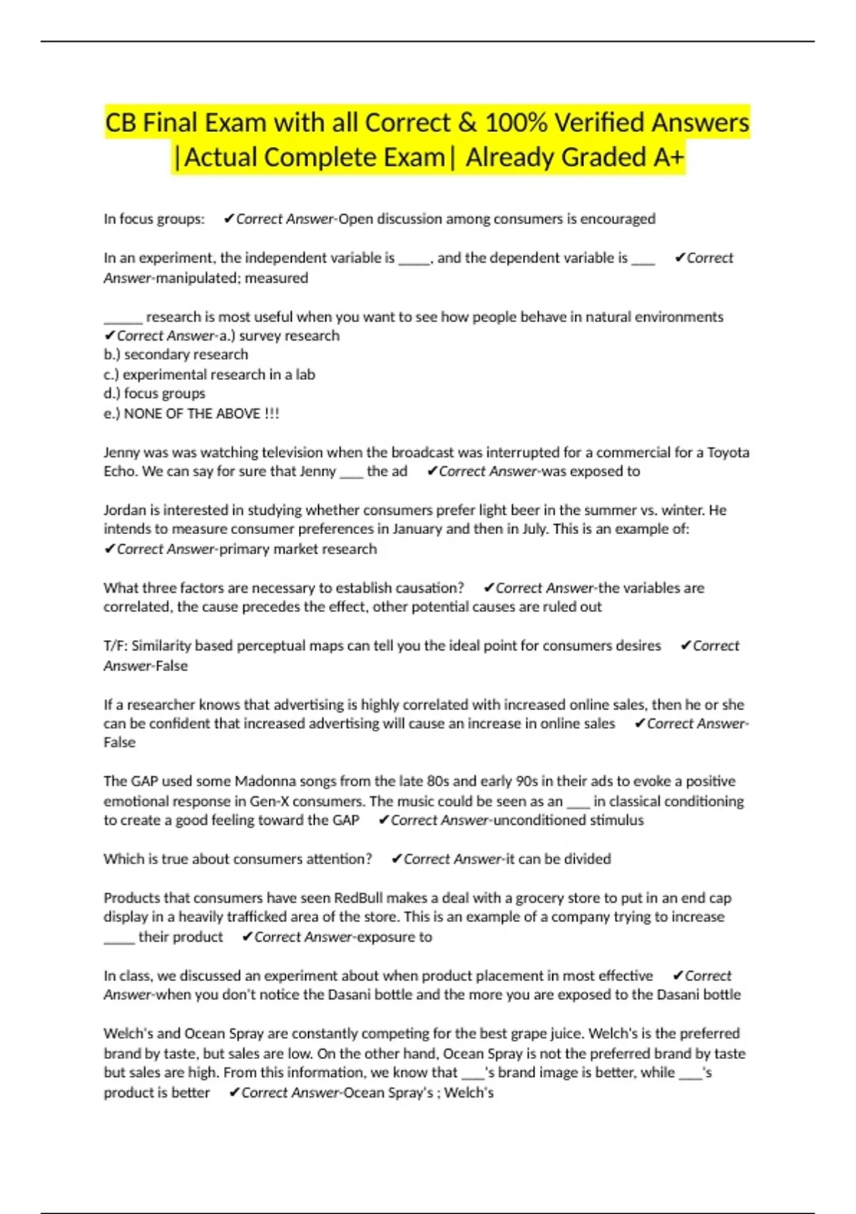 CB Final Exam with all Correct & 100% Verified Answers |Actual Complete Exam| Already Graded A+